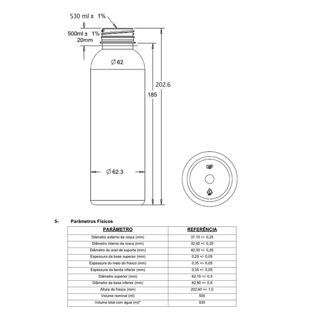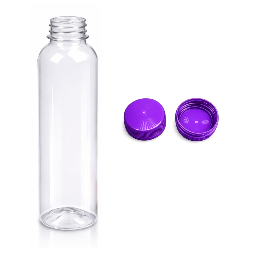 Garrafa Pet 500ML Cilíndrica Redonda Lisa Com Tampa Lacre 140 Unidades