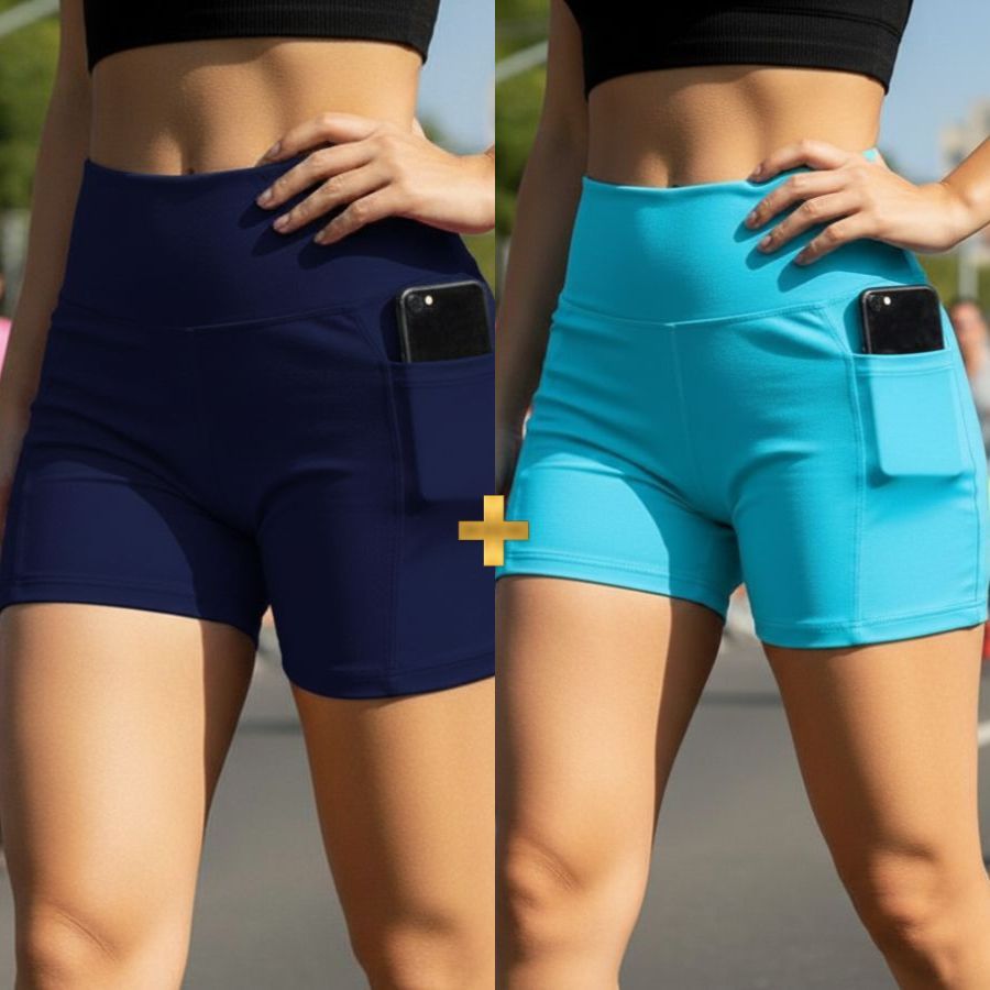 KIT 2 Short Feminino Liso com Bolso Pra Celular/Chaves Ideal pra Treino Corrida Caminhada Tecido Suplex Premium