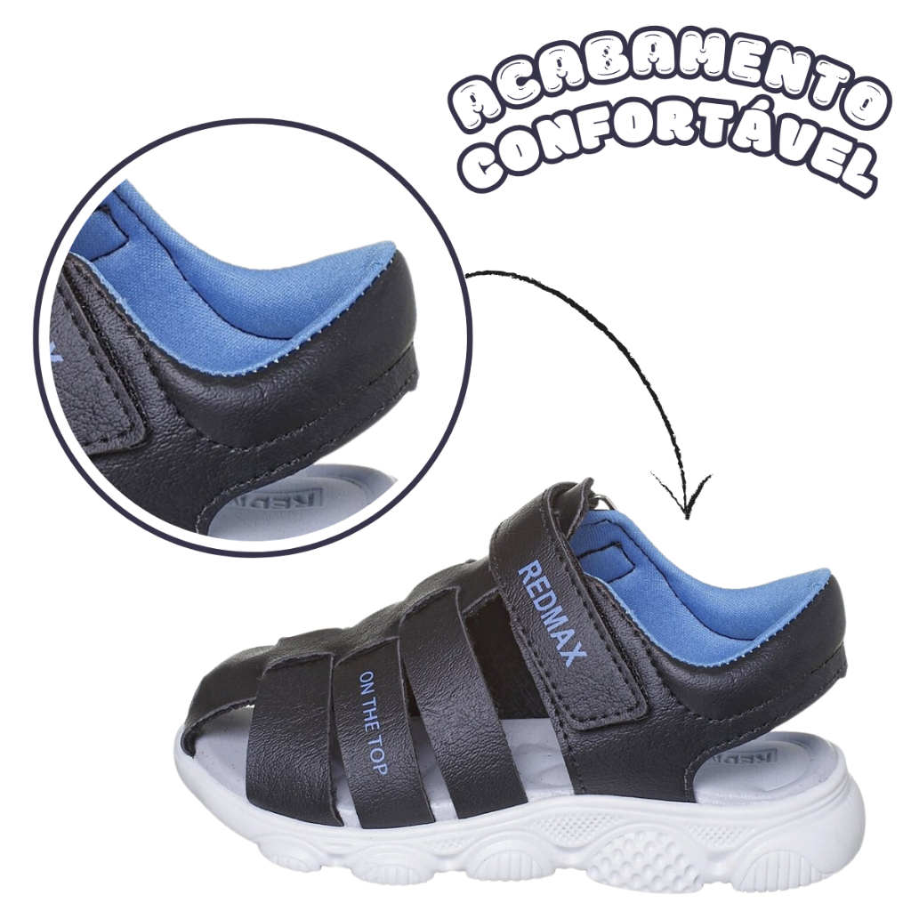 Sandália Papete Infantil Menino Preto com Tiras e Fechamento em Velcro Leve Confortável