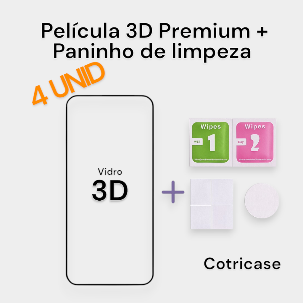 kit 4 Película Vidro 3D Temperado Compativel p/Celular iPhone 7/8/X/XS/11/12/13/14/15/16/Plus/pro/Mini/Max Proteção Tela