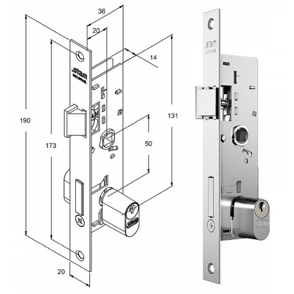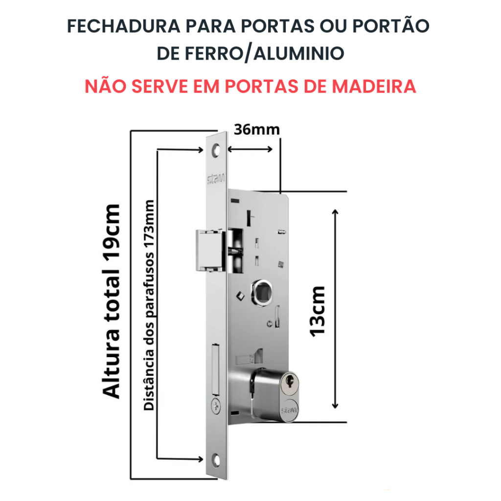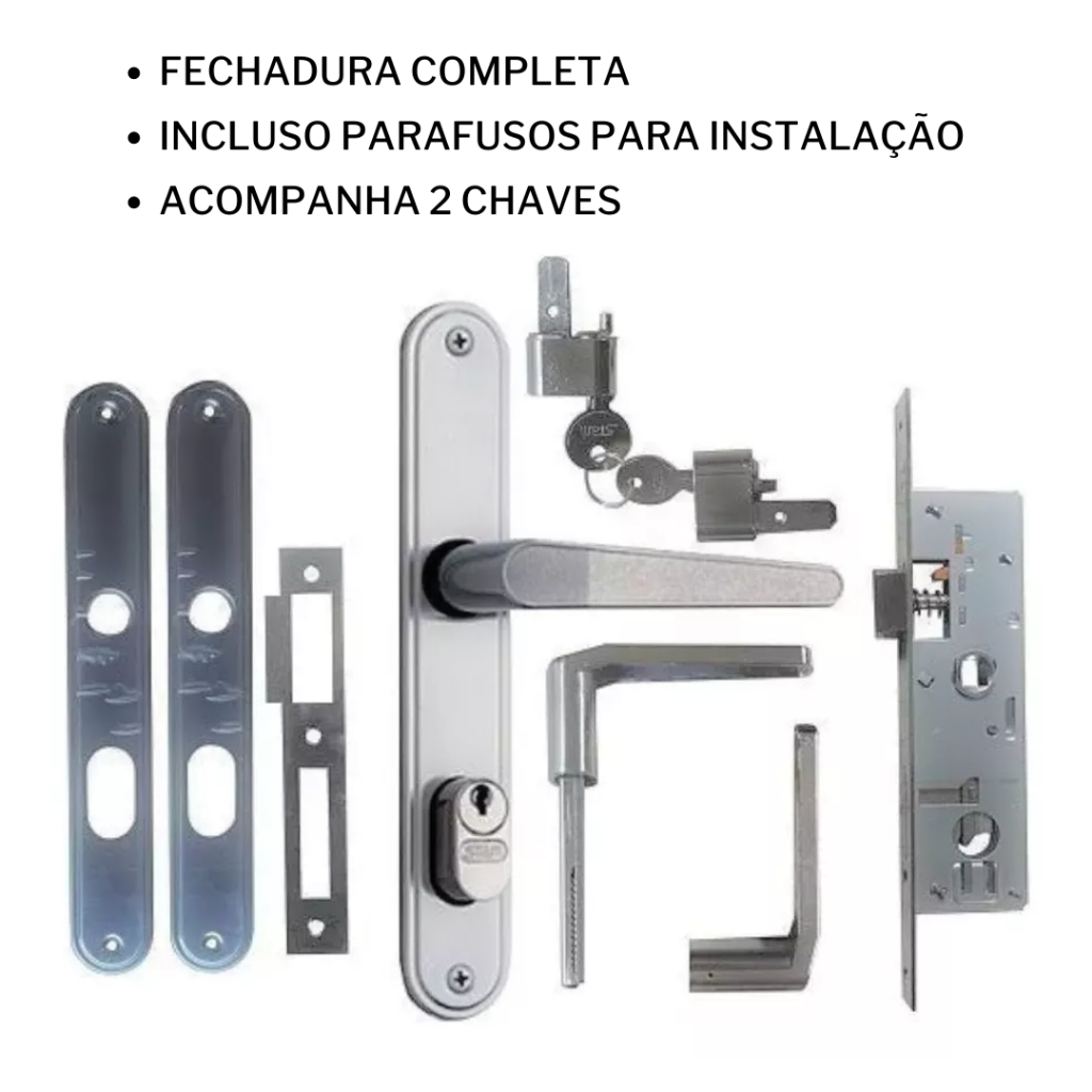 Fechadura Inox 601/33 para Porta de Aluminio c/ 2 Chaves Stam