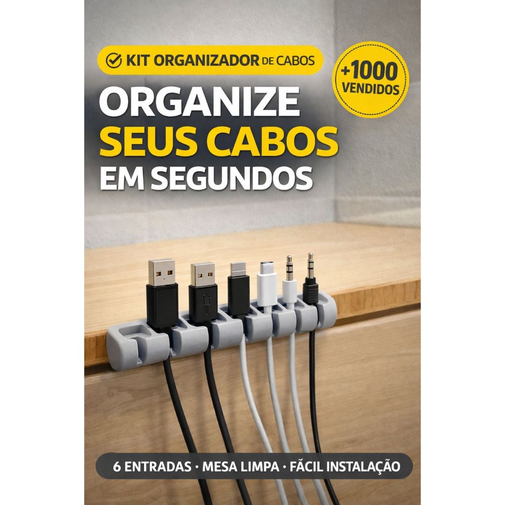 Organizador de Cabos Mesa 6 Entradas Suporte Para Fios Carregador USB Organizador Cabos Celular PC