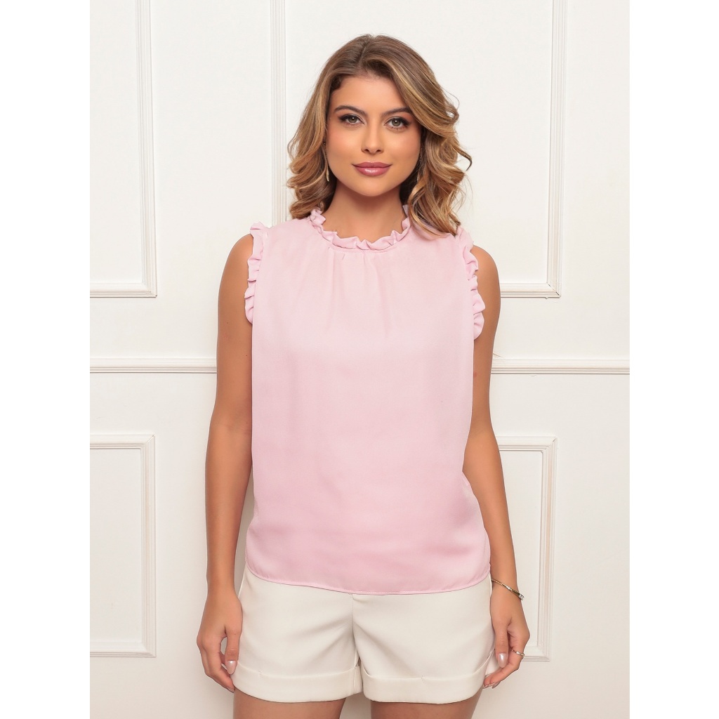 ONLYONE- BLUSA FEMININA ELEGANTE TECIDO CREPE LEVE BABADO GOLA E OMBROS- BLUAS FEMININAS VERAO FESTA