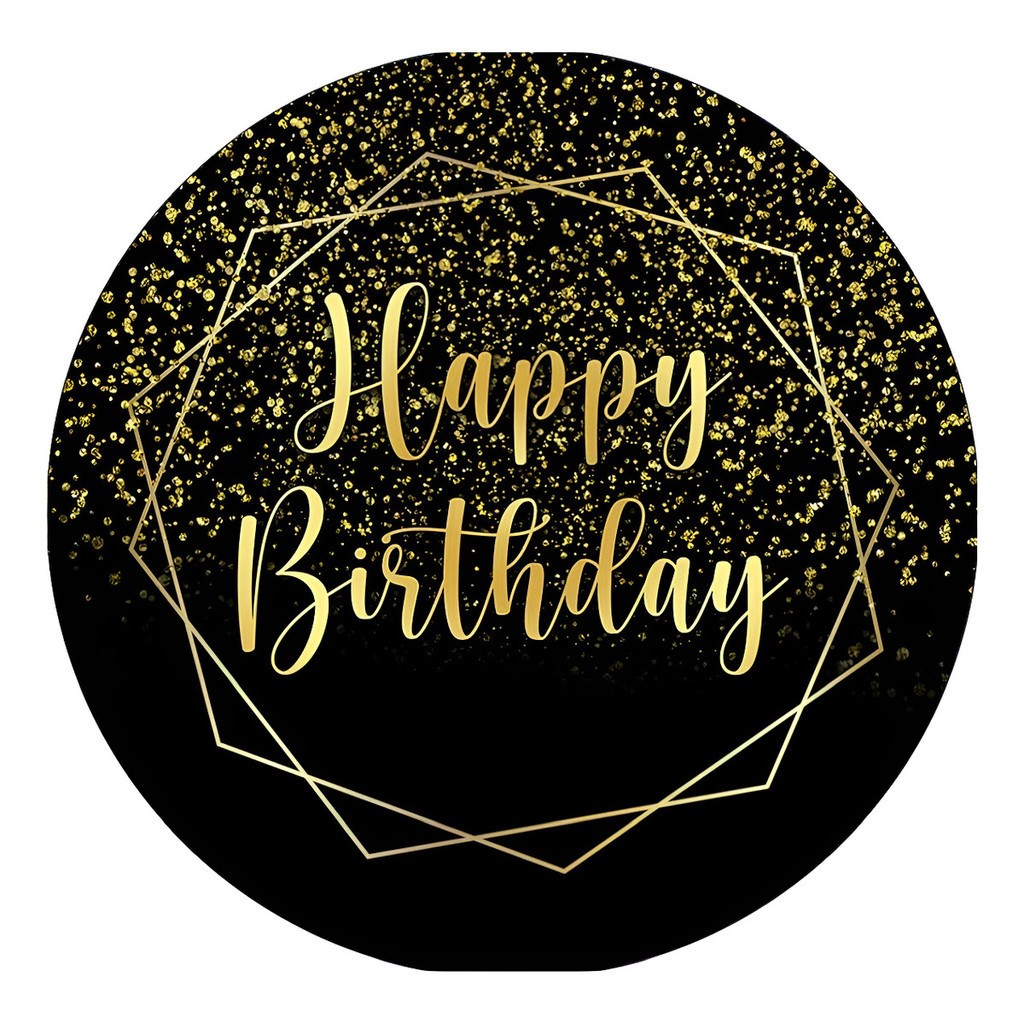 Capa Painel Redondo 1,50x1,50 Sublimado Helanca Premium Tema "Happy Birthday"