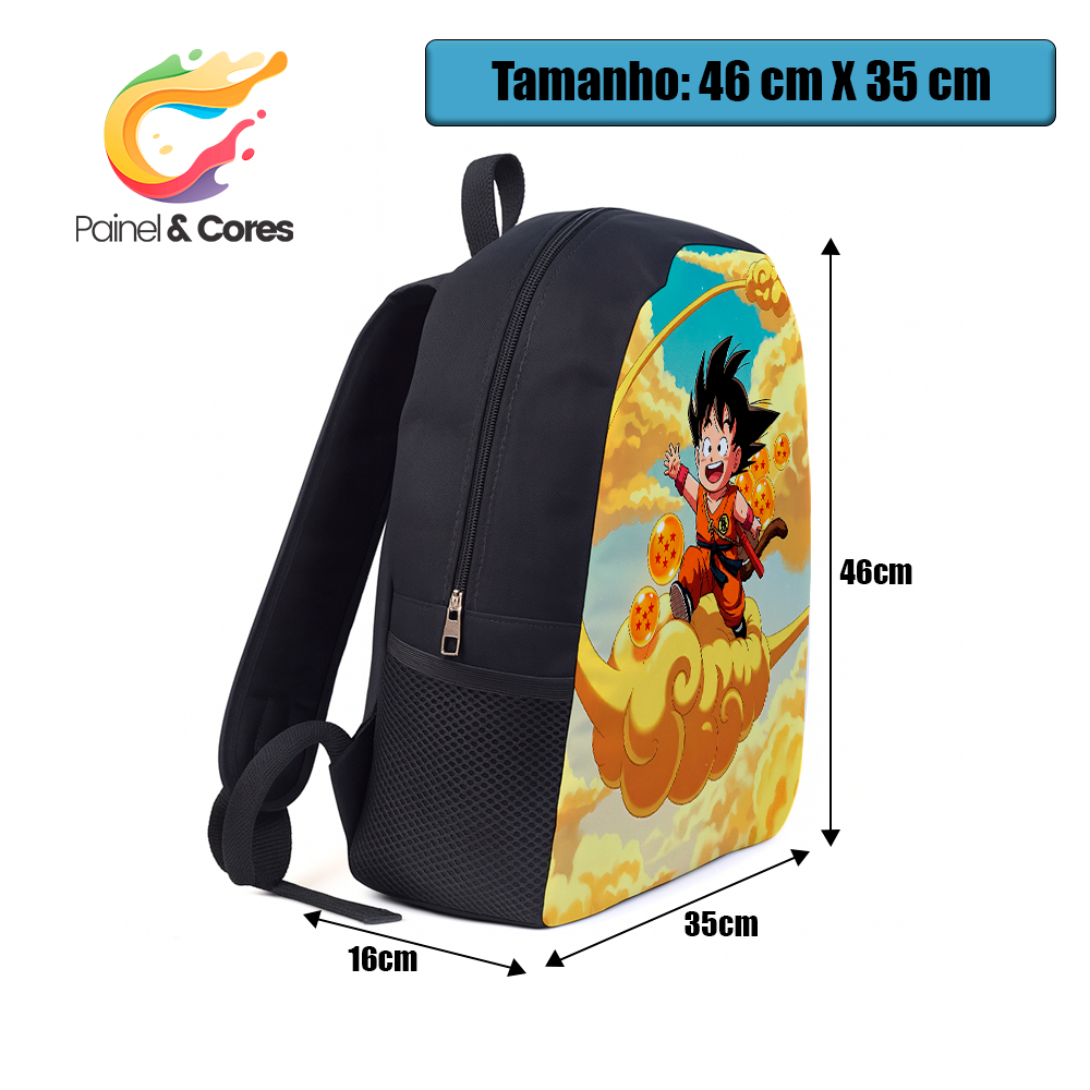 Mochila DRGN BLL Anime Sayajins Goku Vegeta Alça Reforçada Infantil Juvenil de Lona