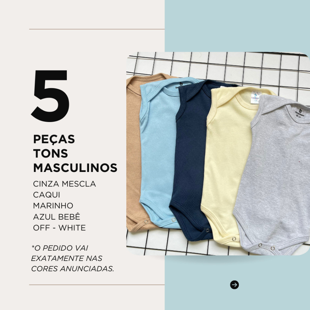 Kit Com 5 Body de Bebê Regata Sem Manga Menino 100% Algodão.