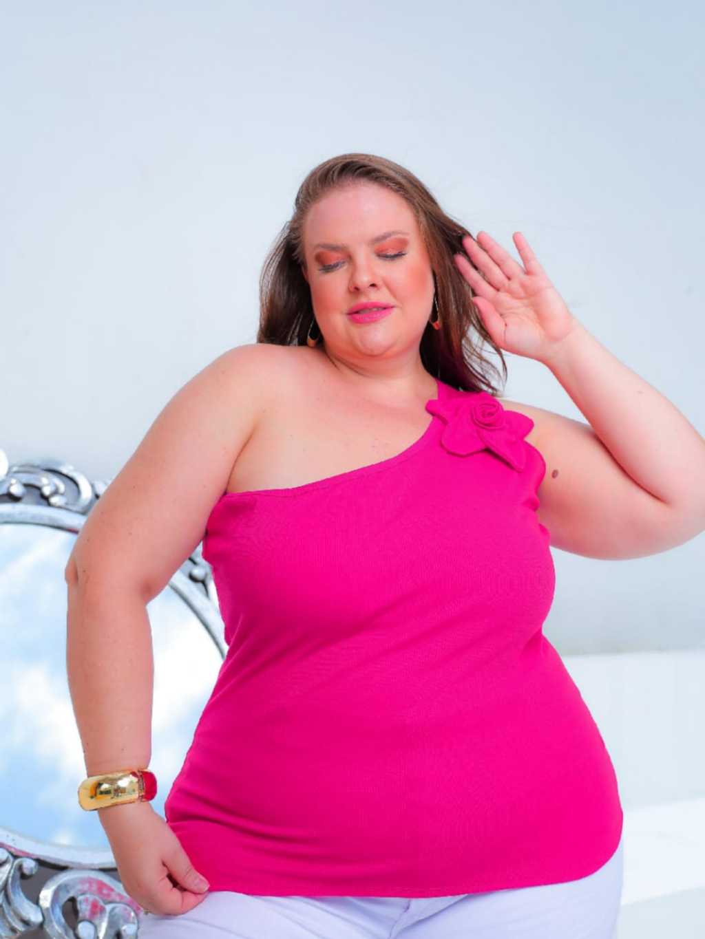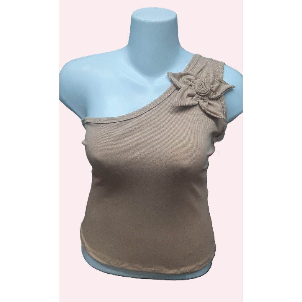 Blusa Femenina de un Hombro Con uma Flor de Enfeite de Ribaninha
