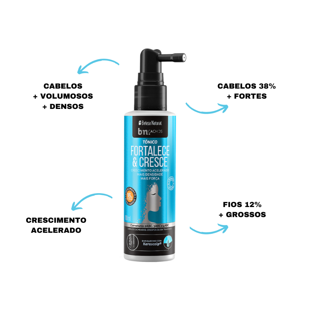 Kit Beleza Natural 5x Tônico Capilar Fortalece e Cresce 100ml bn.Cachos
