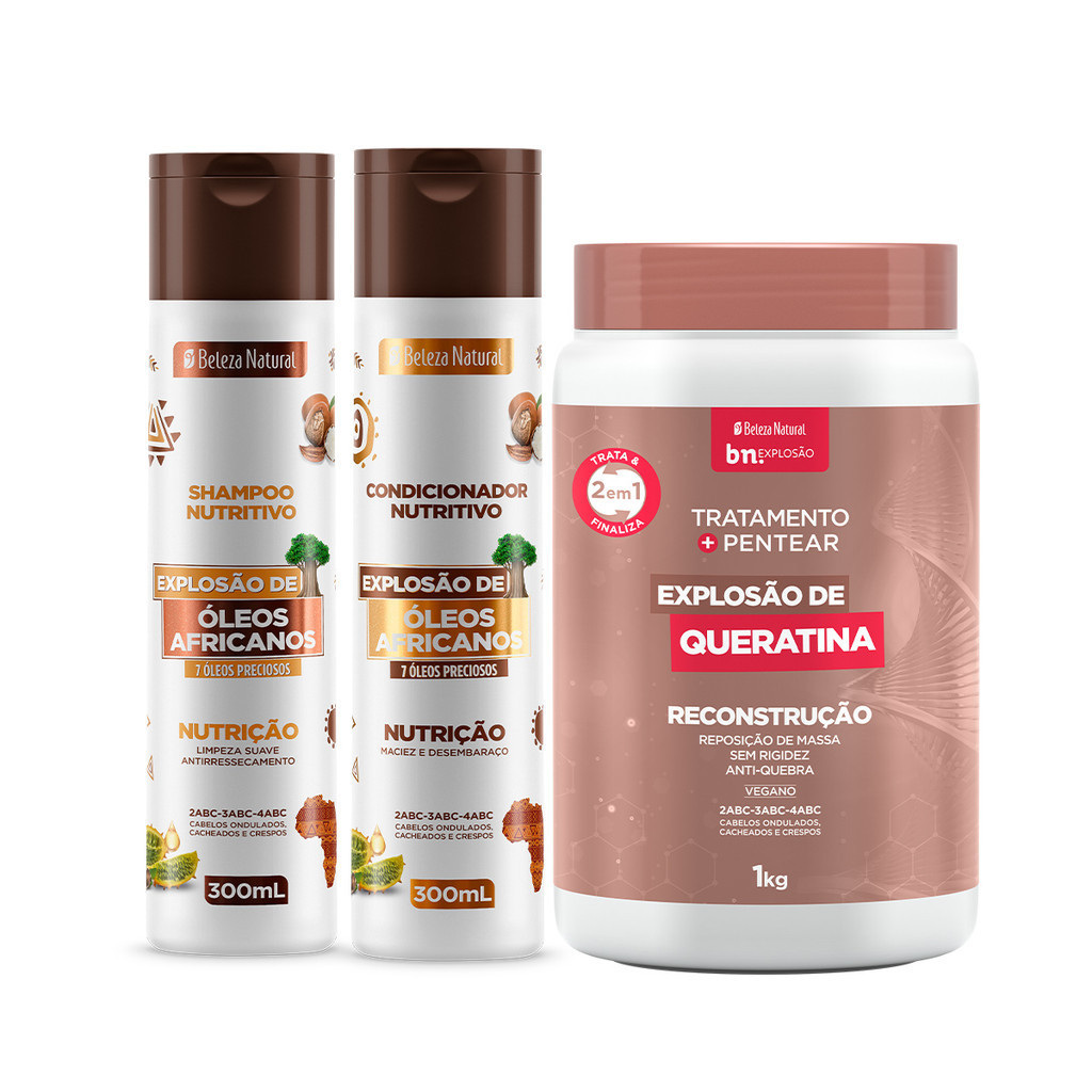 Kit Beleza Natural Duo Óleos Africanos + Tratamento e Pentear Explosão de Queratina 1Kg bn.Explosão