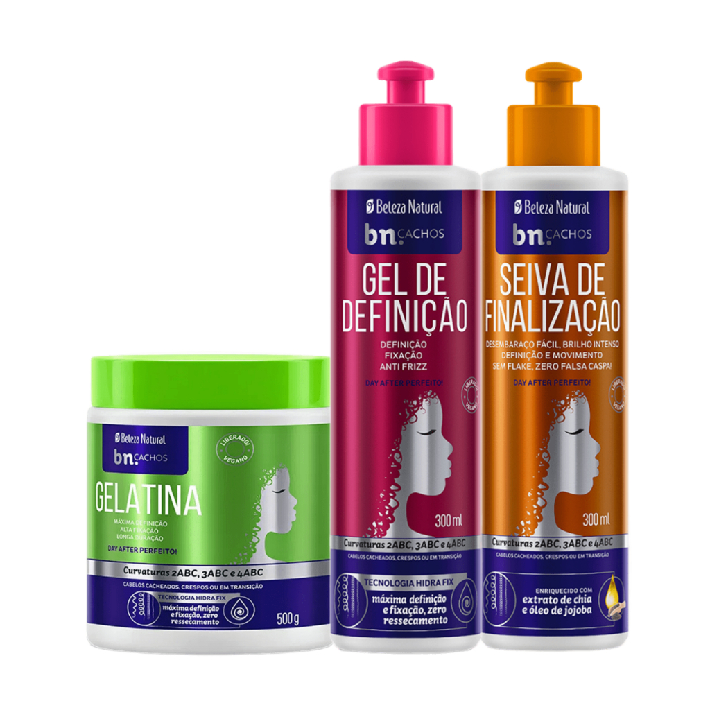 Kit para Finalização Gel de Definição + Gelatina Hidra Fix + Seiva de Finalização Beleza Natural