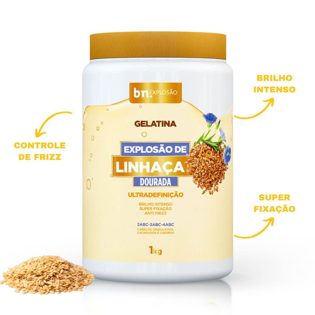 Kit Beleza Natural Creme de Pentear Óleos Africanos, Gelatina Capilar Linhaça Dourada 1Kg bn.Cachos