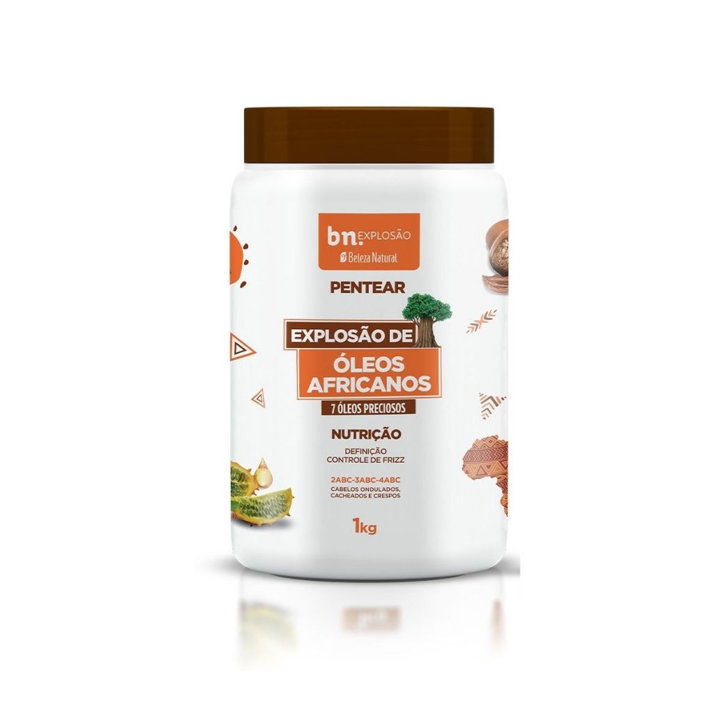 Kit Cachos Óleos Africanos – Shampoo, Condicionador, Pentear e Ativador de Cachos – Beleza Natural