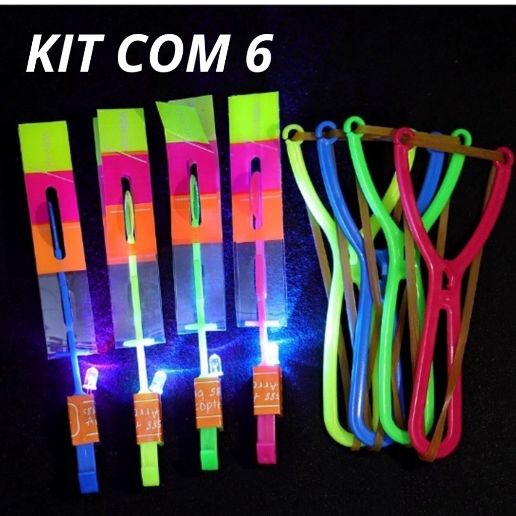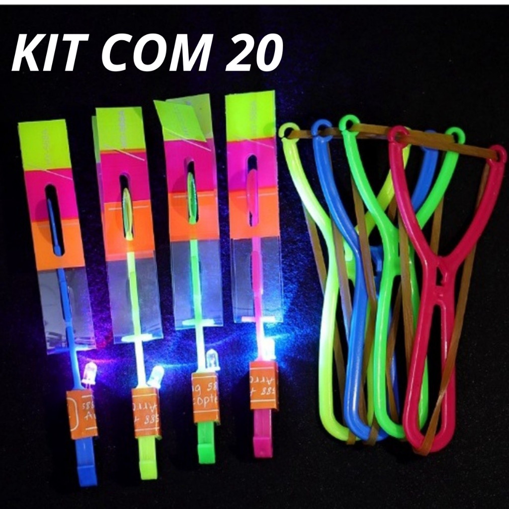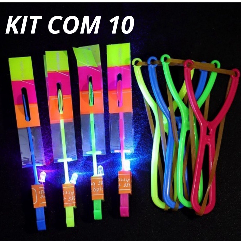 Kit5/10/15/20/25/30Brinquedo Avatar Voador Rotativo Foguete Lançador Estilingue Brilha Luz De Led Helicoptero