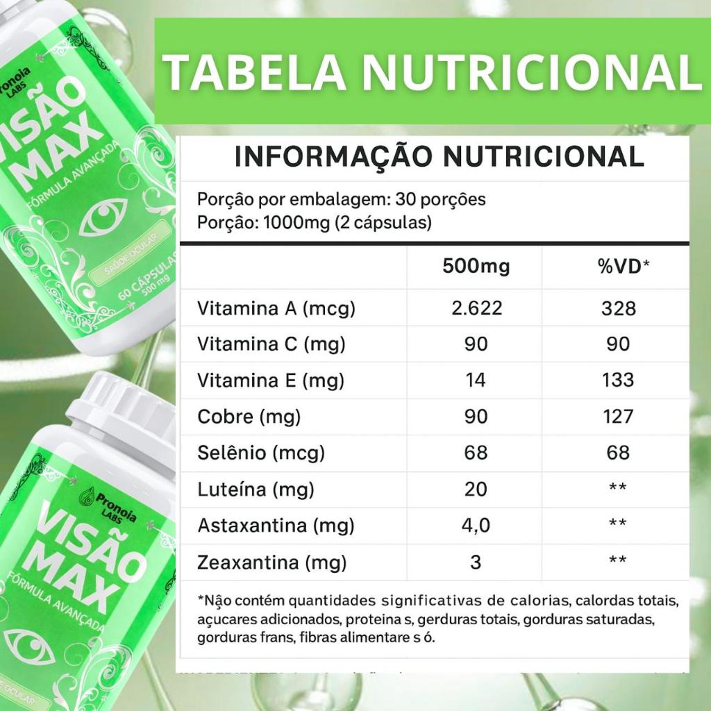 Luteina Astaxantina Zeaxantina + Vitamina A C E + Zinco - SUPLEMENTO PARA SUA VISÃO