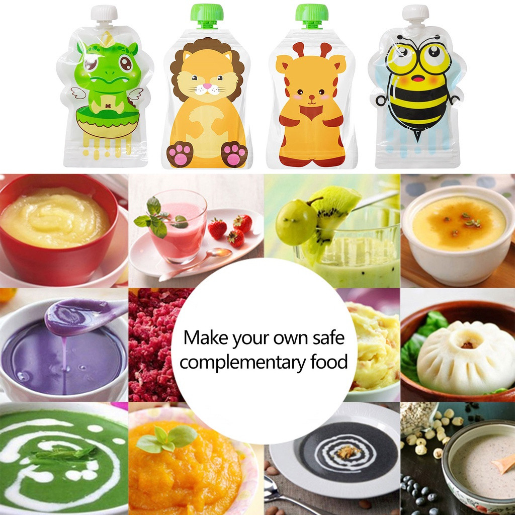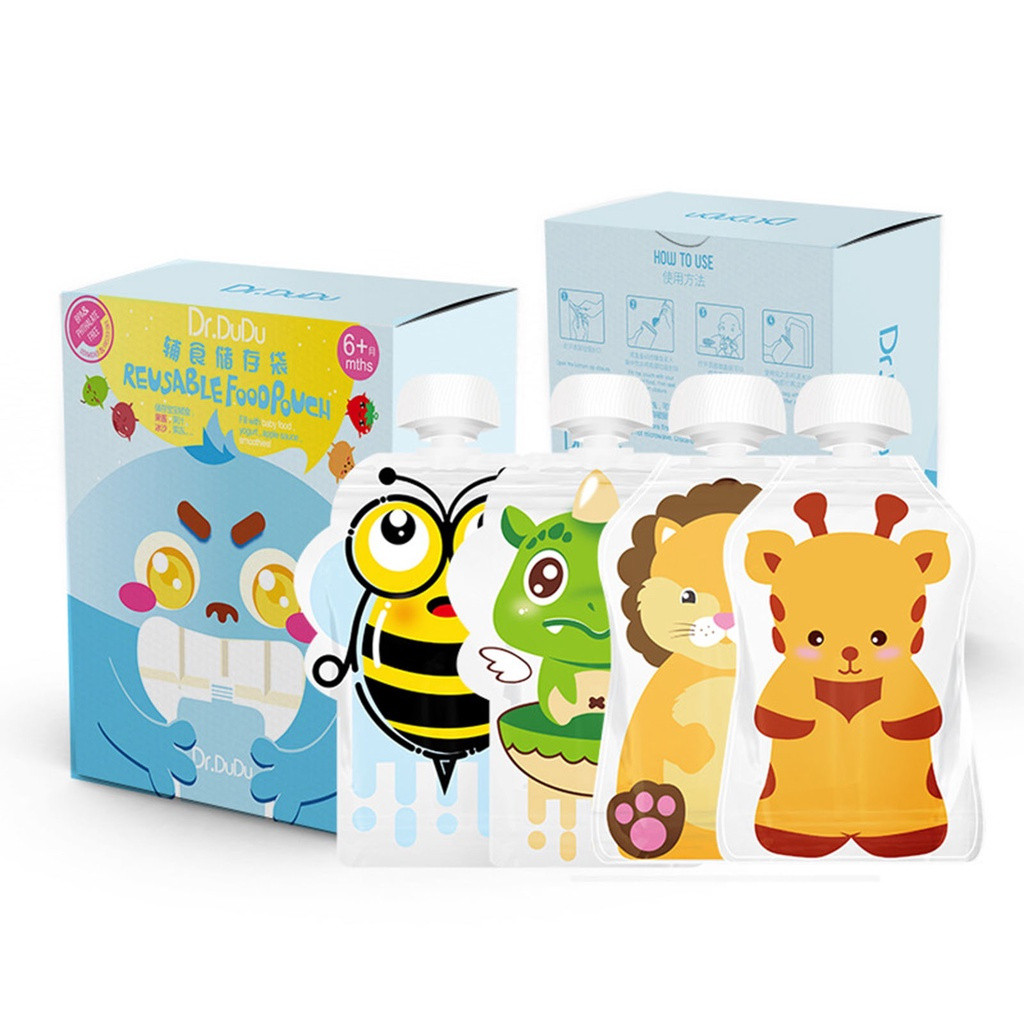 4pcs reutilizável selado recarregável Smoothie Food Storage Bags, mingau, iogurte, saco do bebê com leite 5674