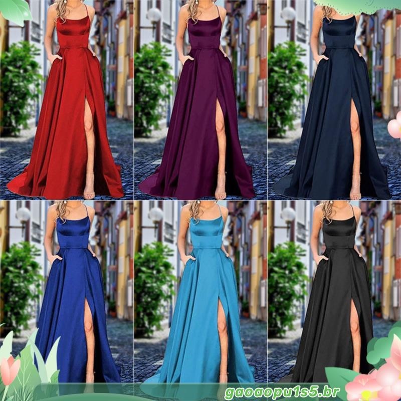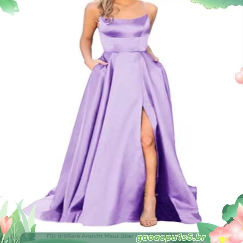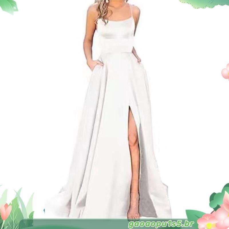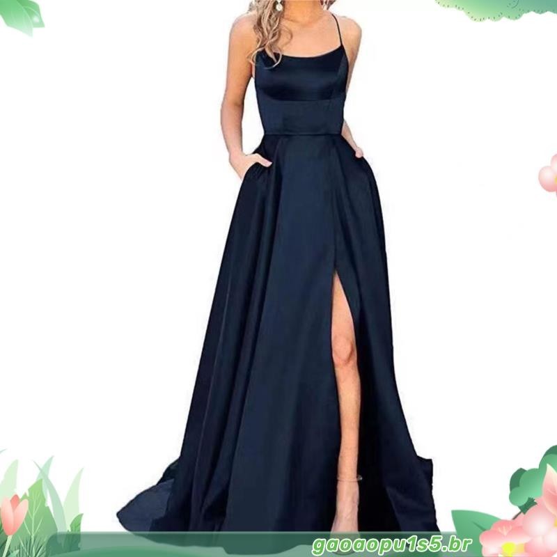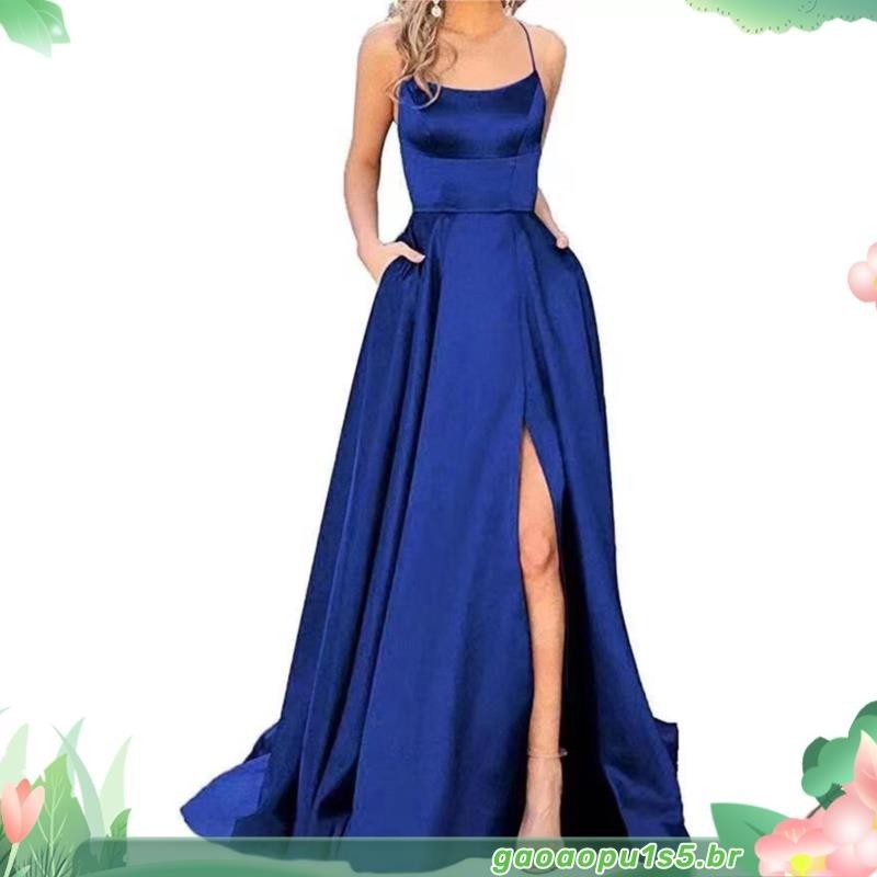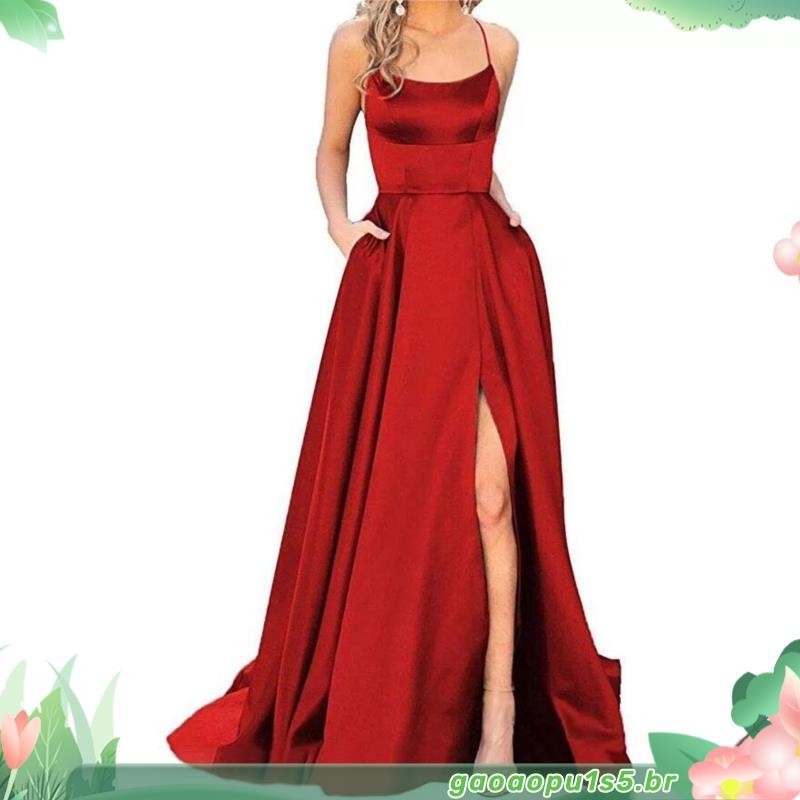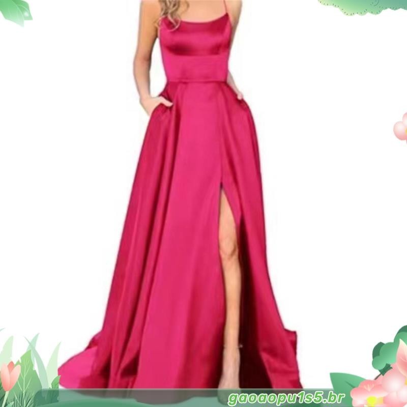 Vestidos De Baile De Finalistas Feminino De Cetim Spaghetti Noite Formal Com Bolsos