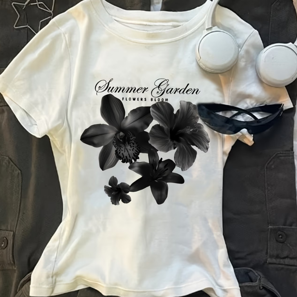 Cropped Flowers Bloom Estética Vintage Promoção Básico Algodão