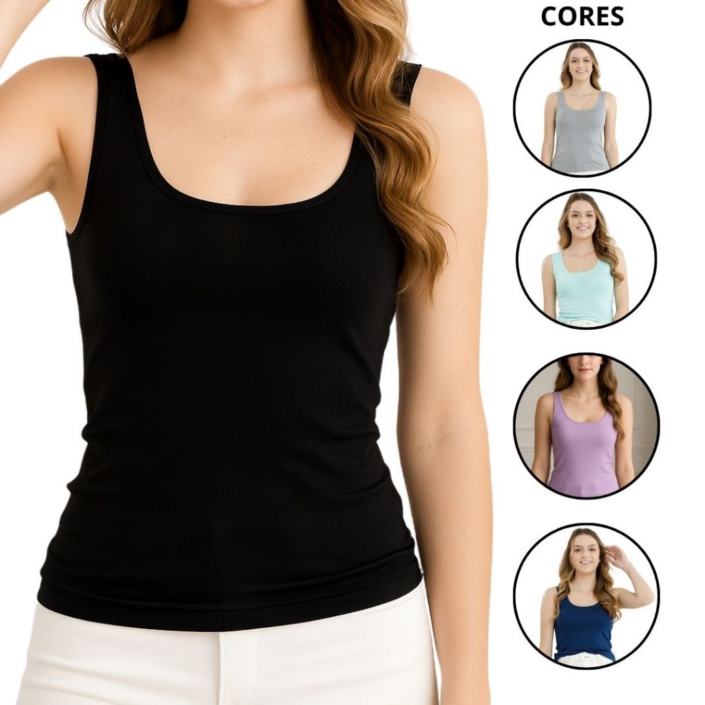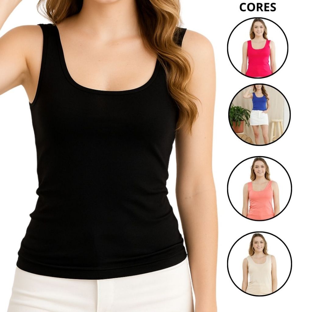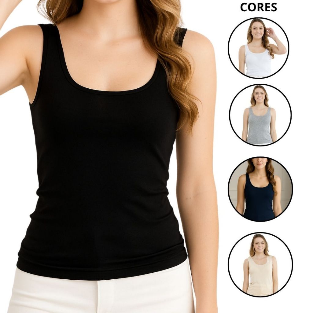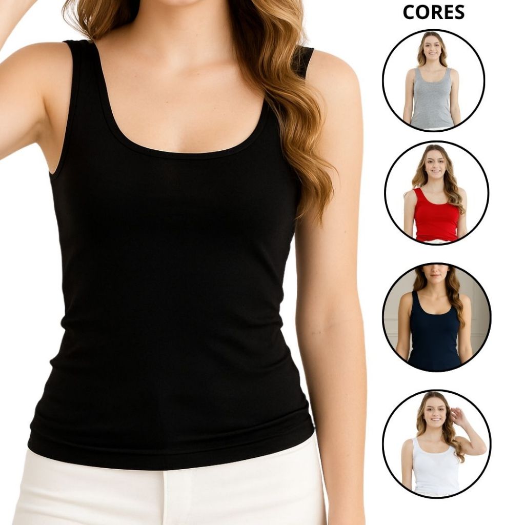 Kit 5 Regata Blusinha Alça Larga Grossa Viscolycra Blusa Slim Fit Manga Curta