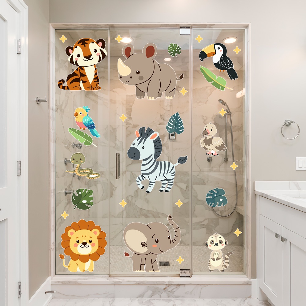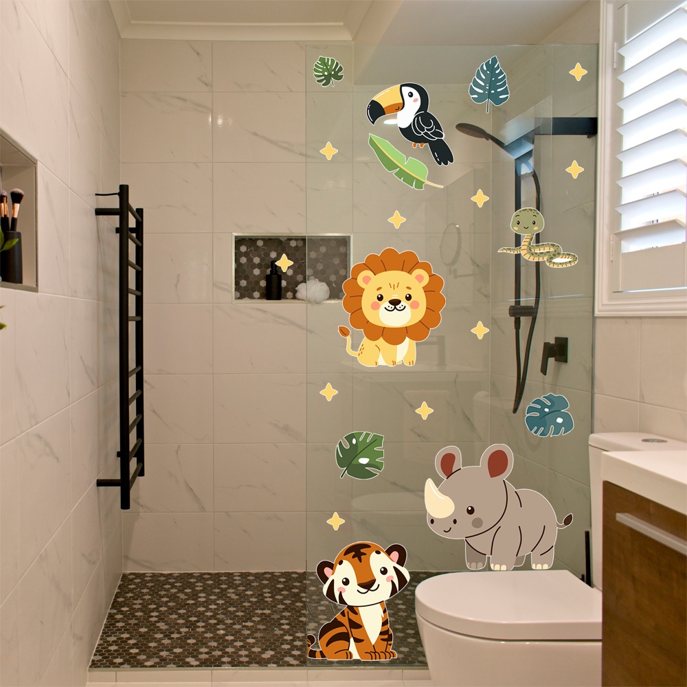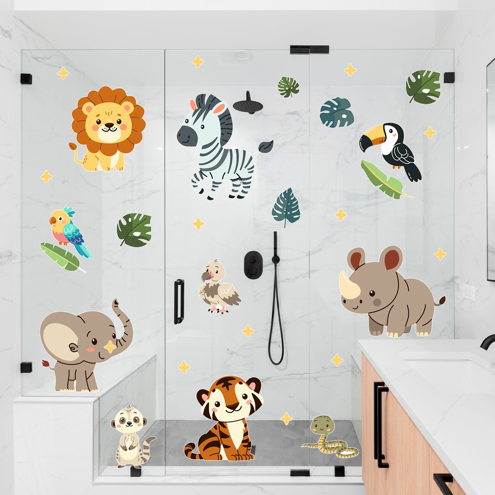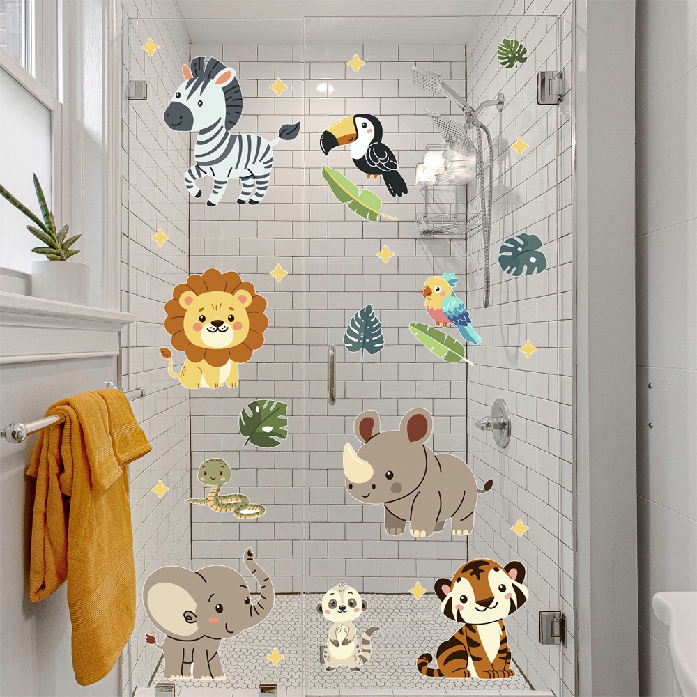 Adesivo Infantil Para Box Banheiro Safari Animais Menino Menina - box031