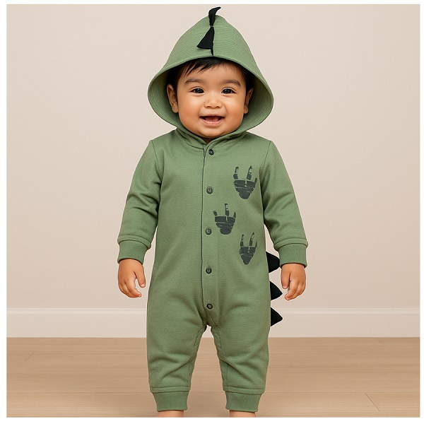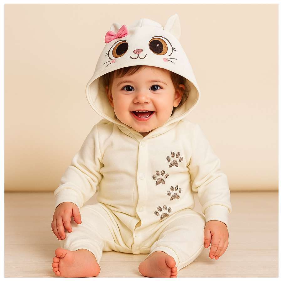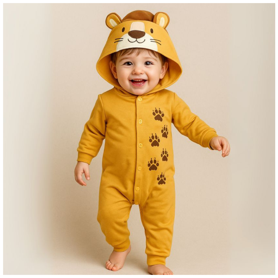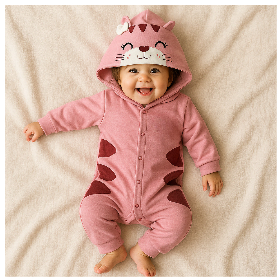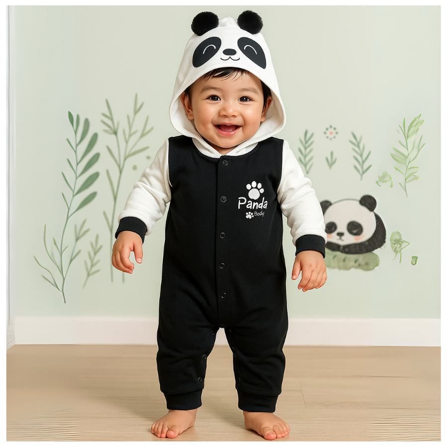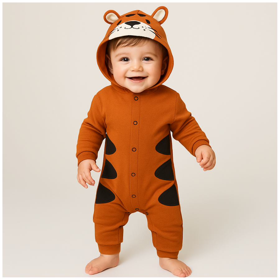 Macacão infantil fantasia manga longa capuz bordado divertido animais com botões e punho
