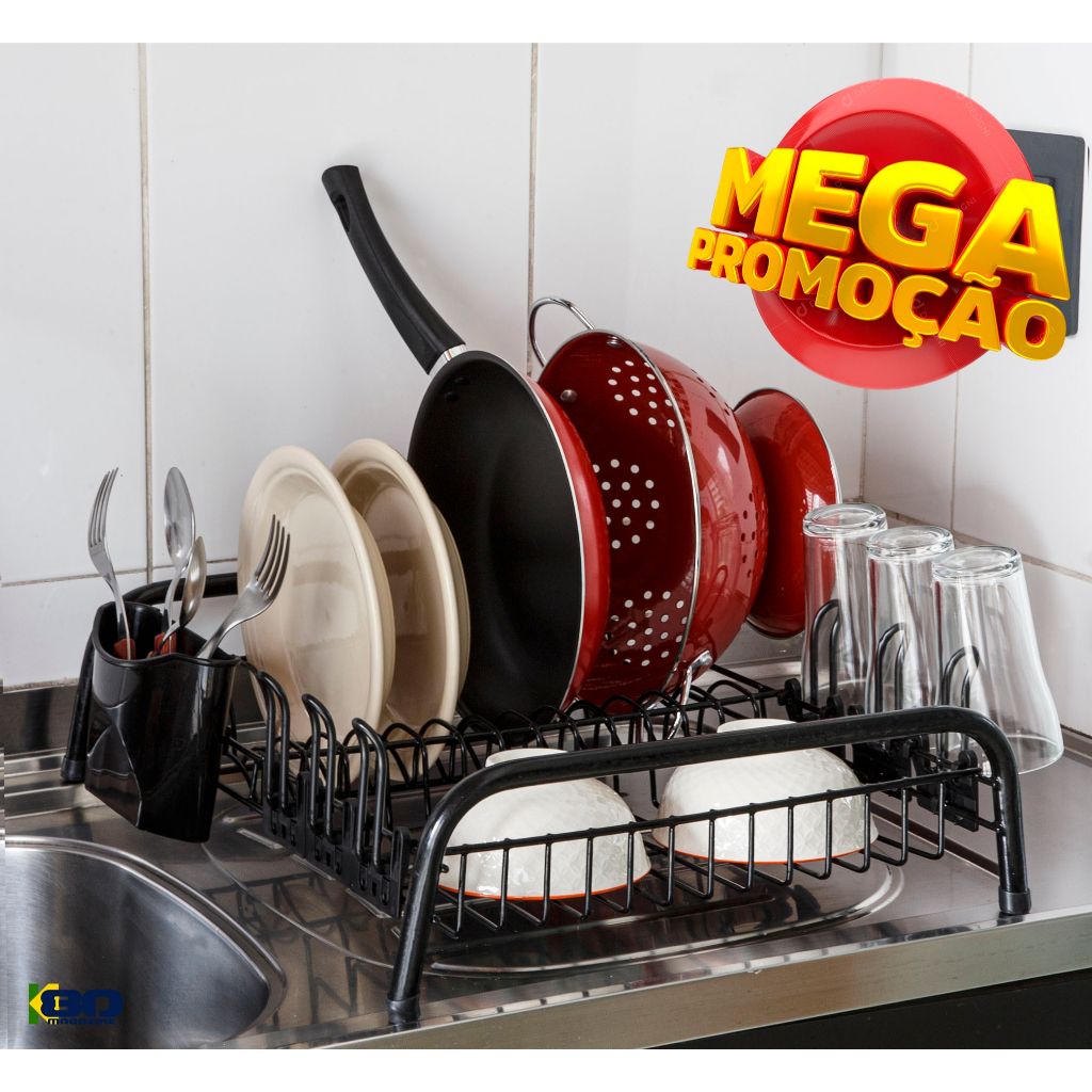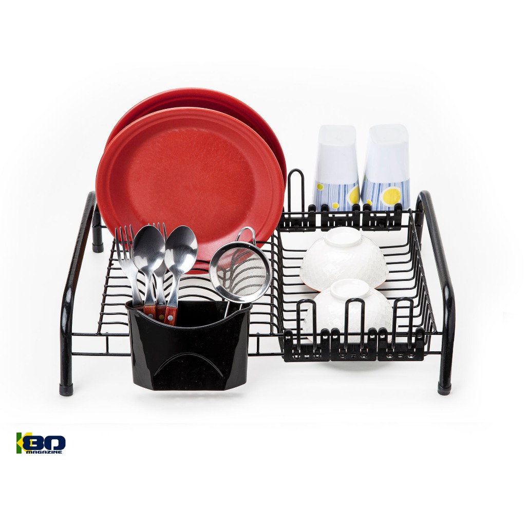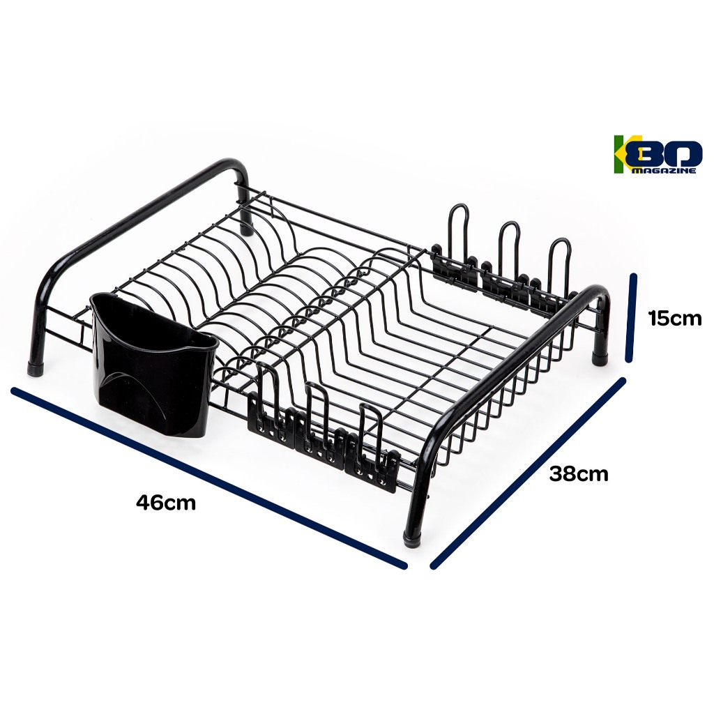 Escorredor De Louça All Black Londres 12 Pratos 6 Copos C/ Porta Talher