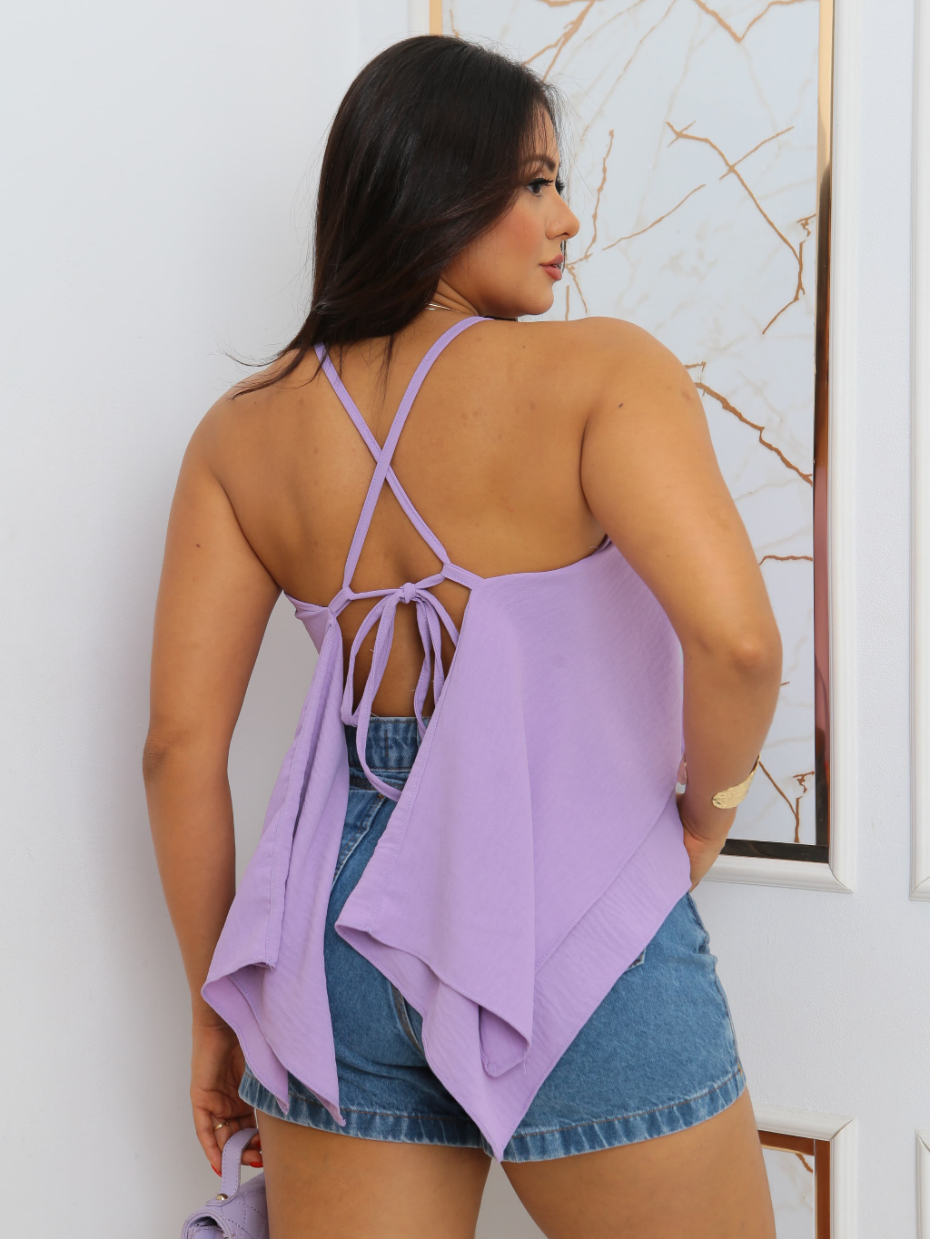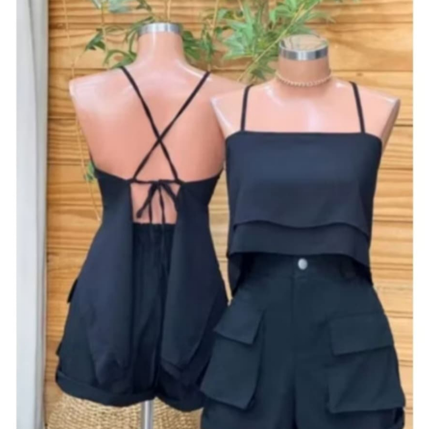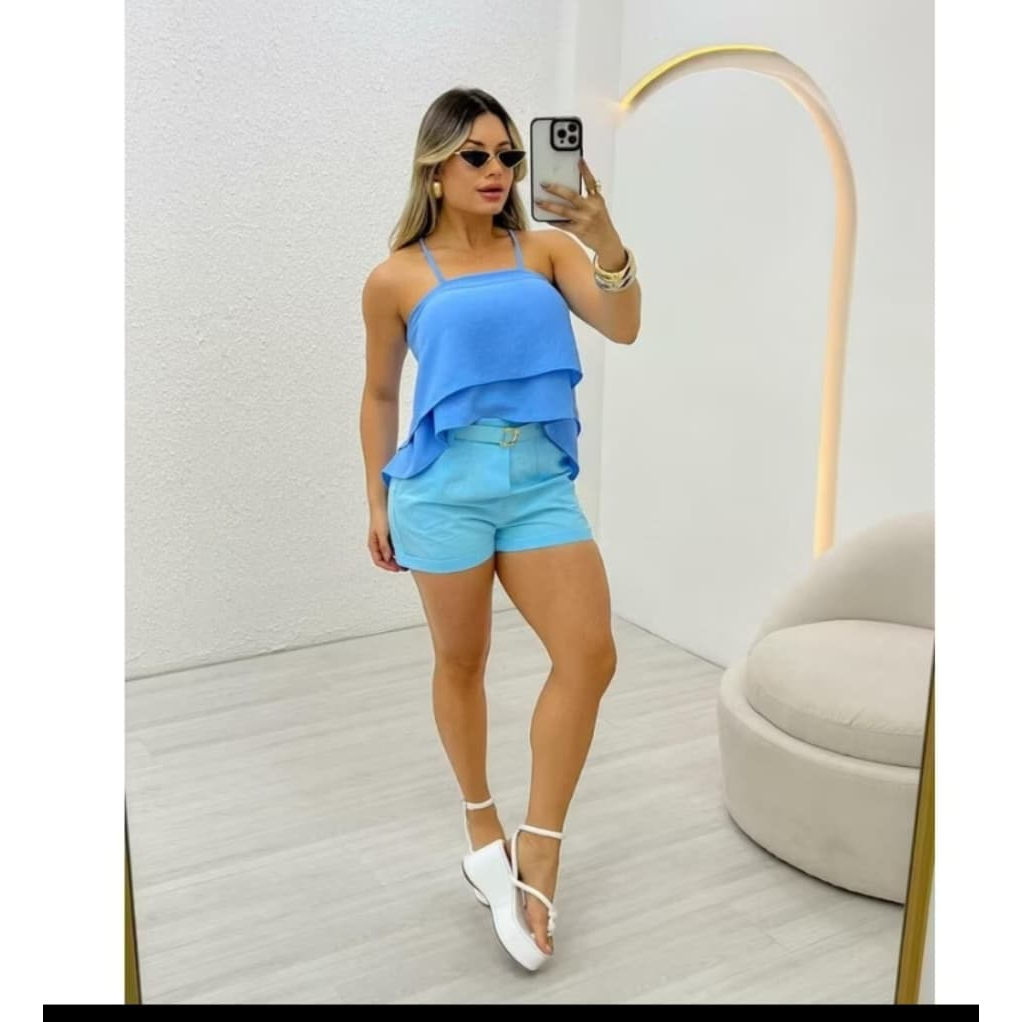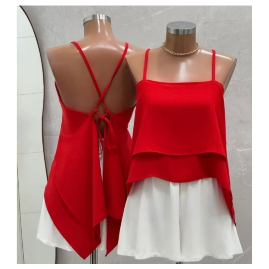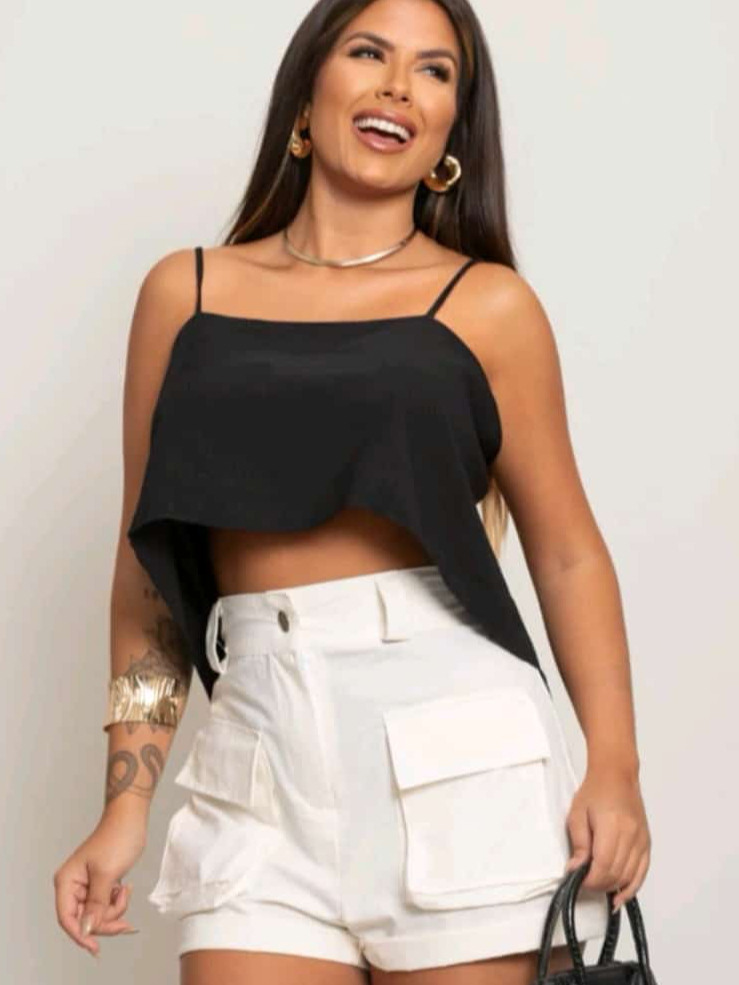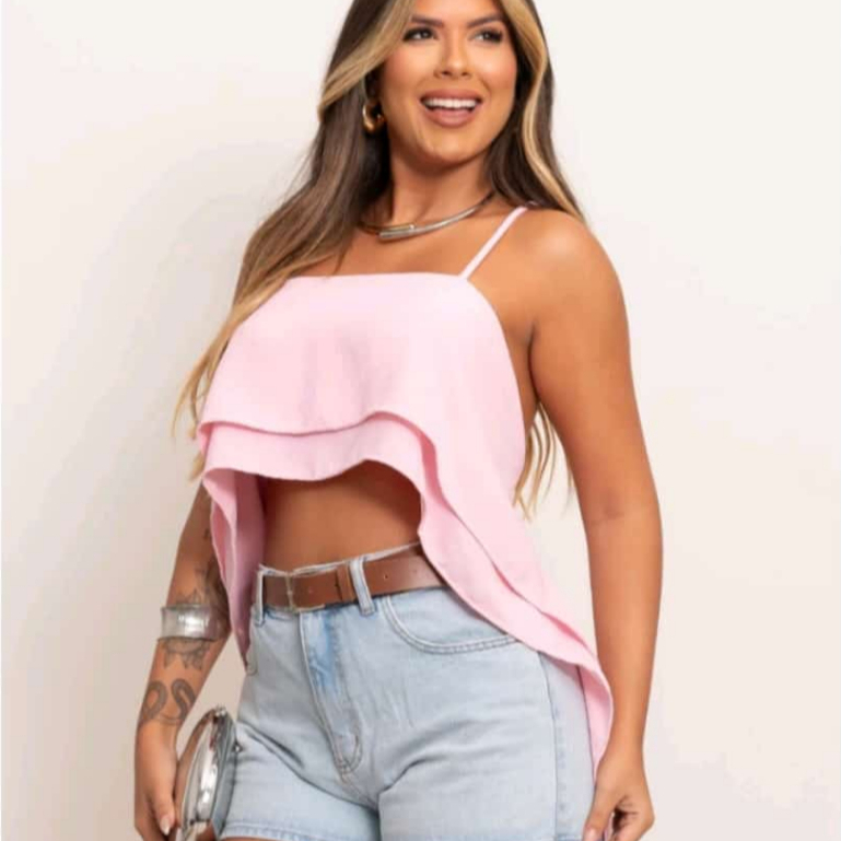 Blusa Cropped Femenina 2 Babados con Alçimha Amarraçao nas costas, con bojo 2025