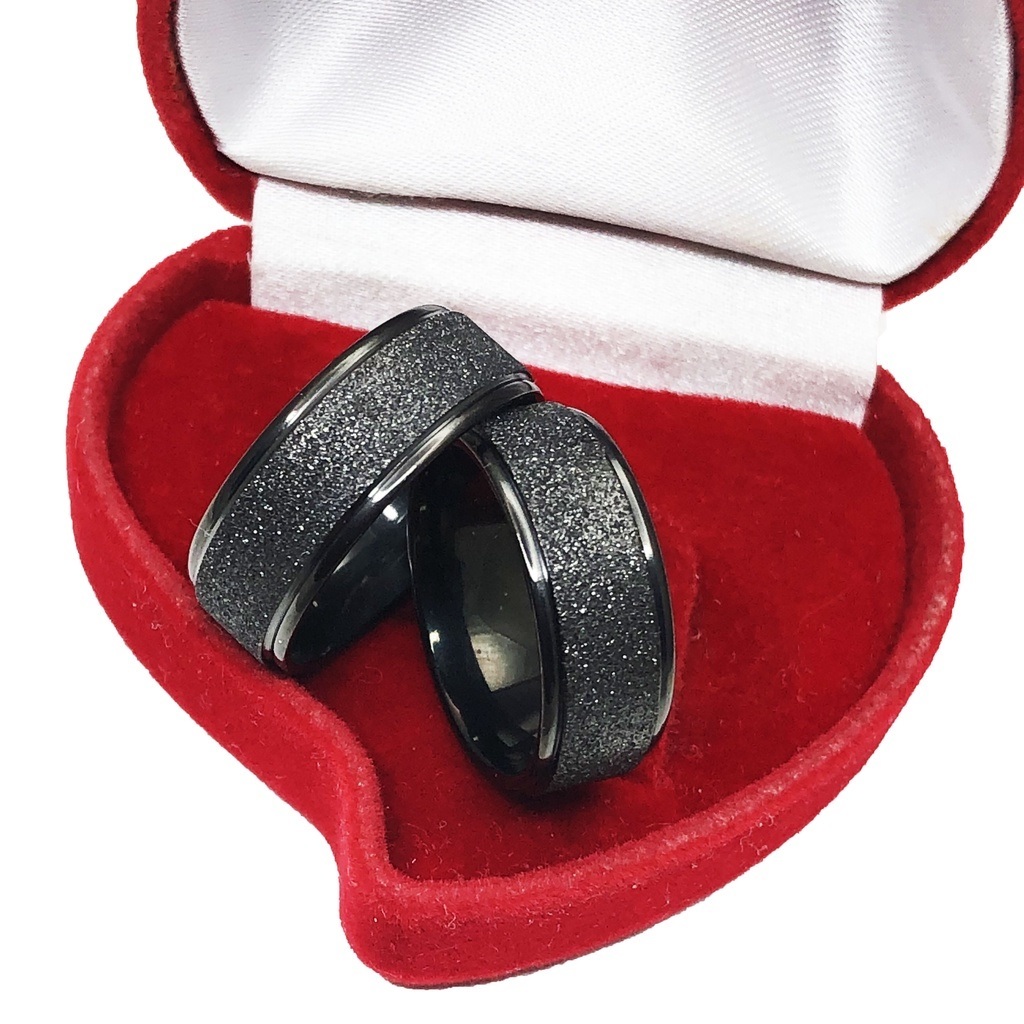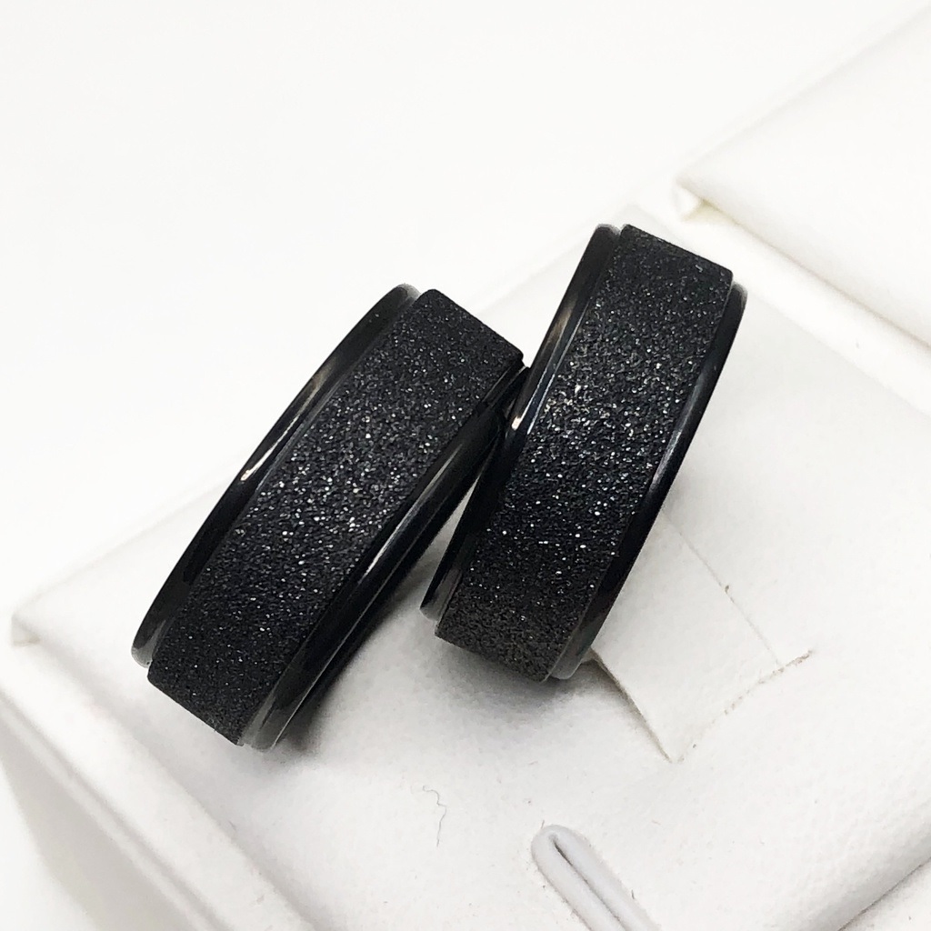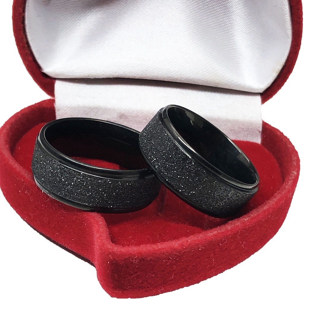 Kit Par De Aliança Jateada Preta Black Namoro Noivado Aço Inox 316L com Brilho