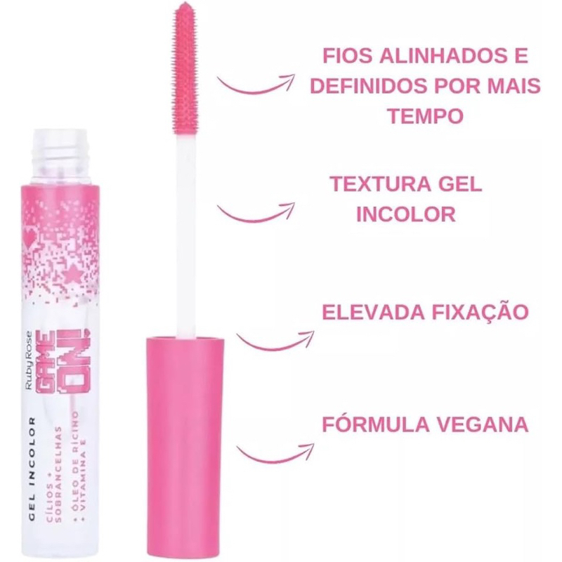 Gel Incolor Cílios e Sobrancelhas Game On Ruby Rose Óleo de Rícino e Vitamina E HB-509