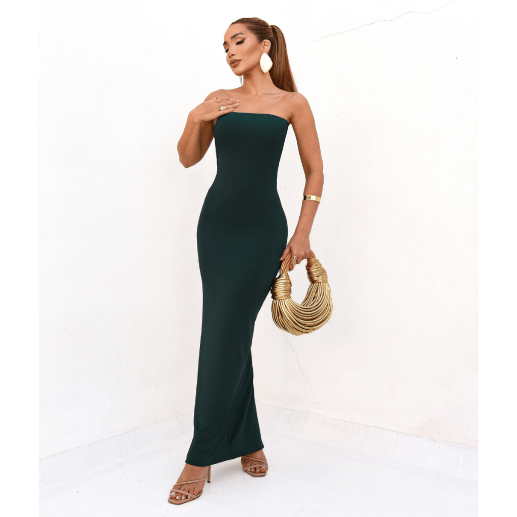 Vestido Longo Colado Tomara que Caia Tubinho Elegante Casual Chique