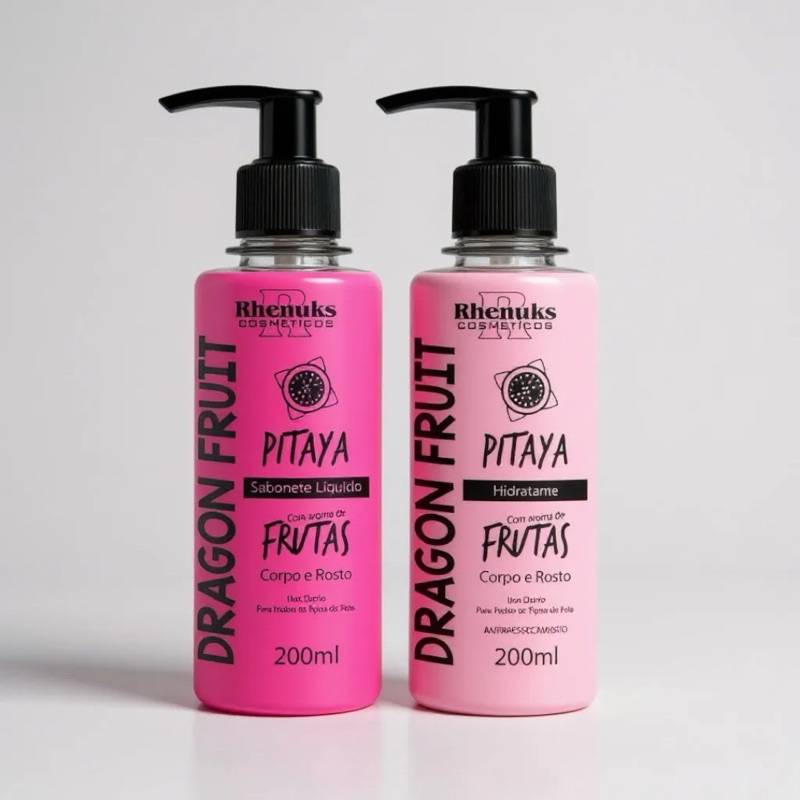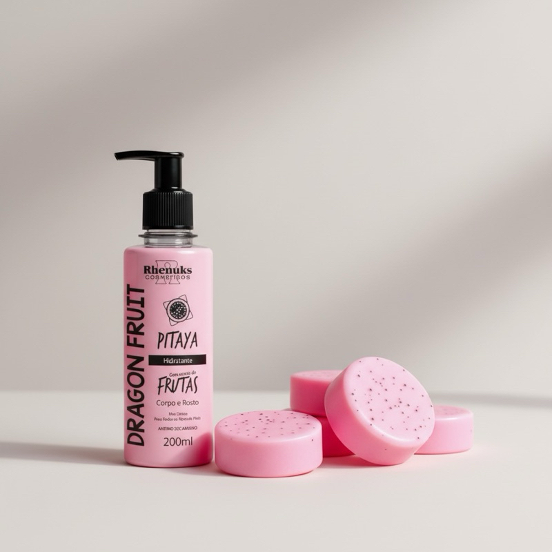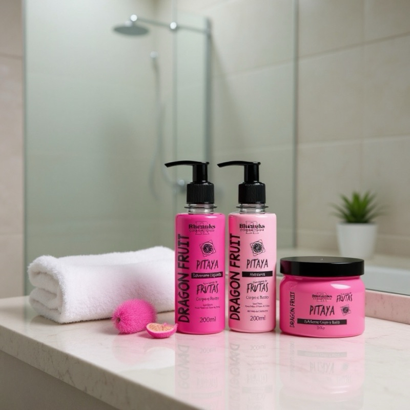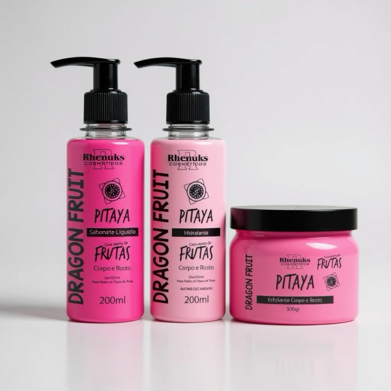 Kit Pitaya Rhenuks Sabonete Líquido+Hidratante+Esfoliante Corporal-Kit Cuidados com Pele–Limpeza,Hidratação e Esfoliação