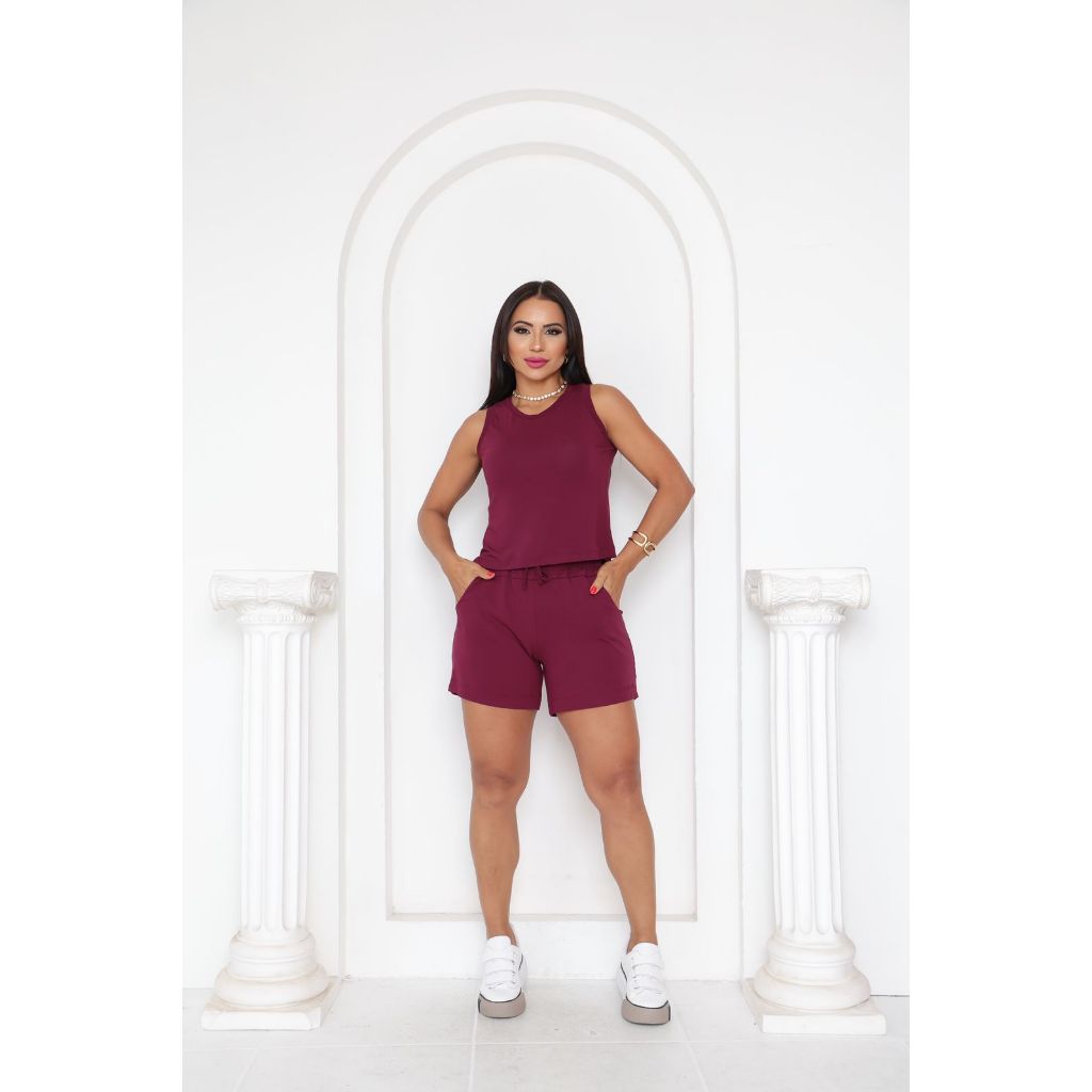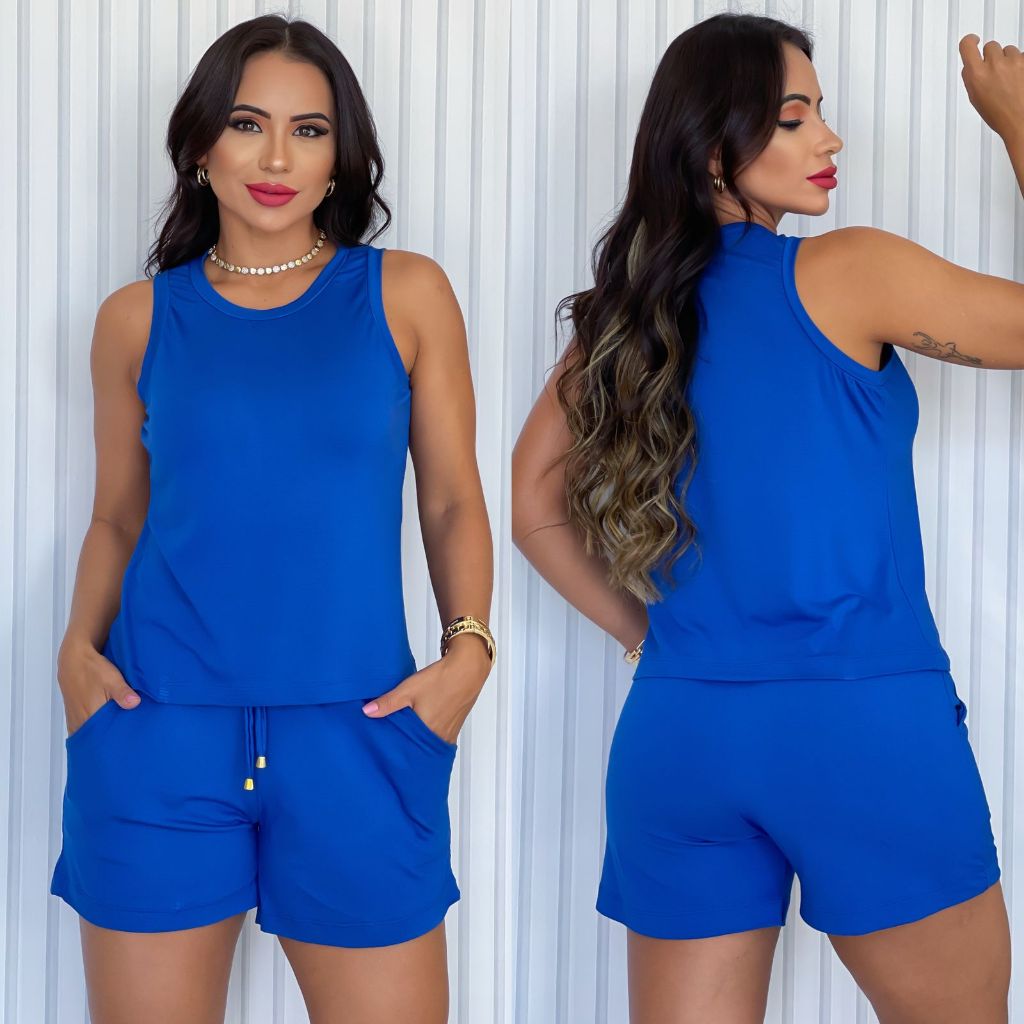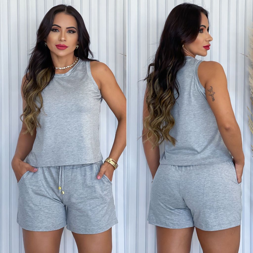 Conjunto Short e Blusa Regata Liso Viscolaycra Short Soltinho