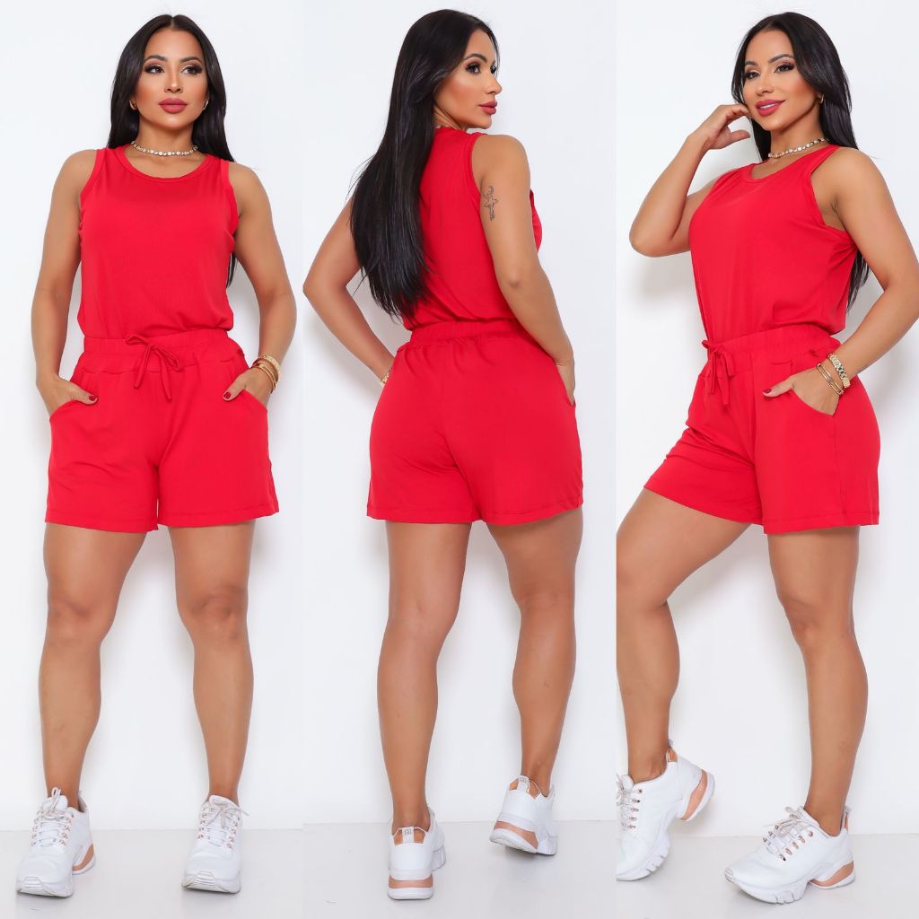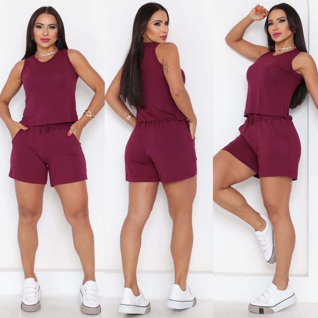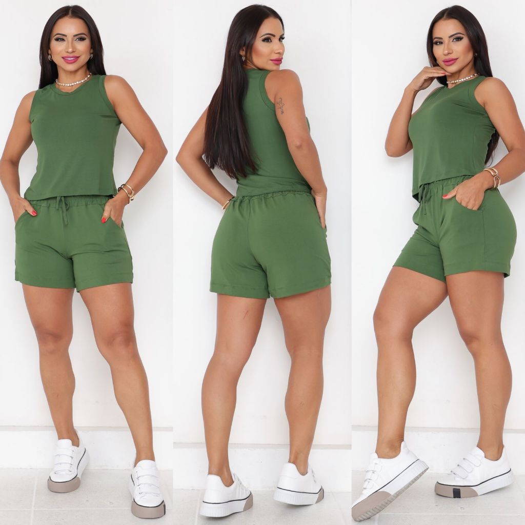 Conjunto Short e Blusa Regata Liso Viscolaycra Short Soltinho