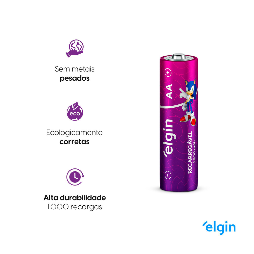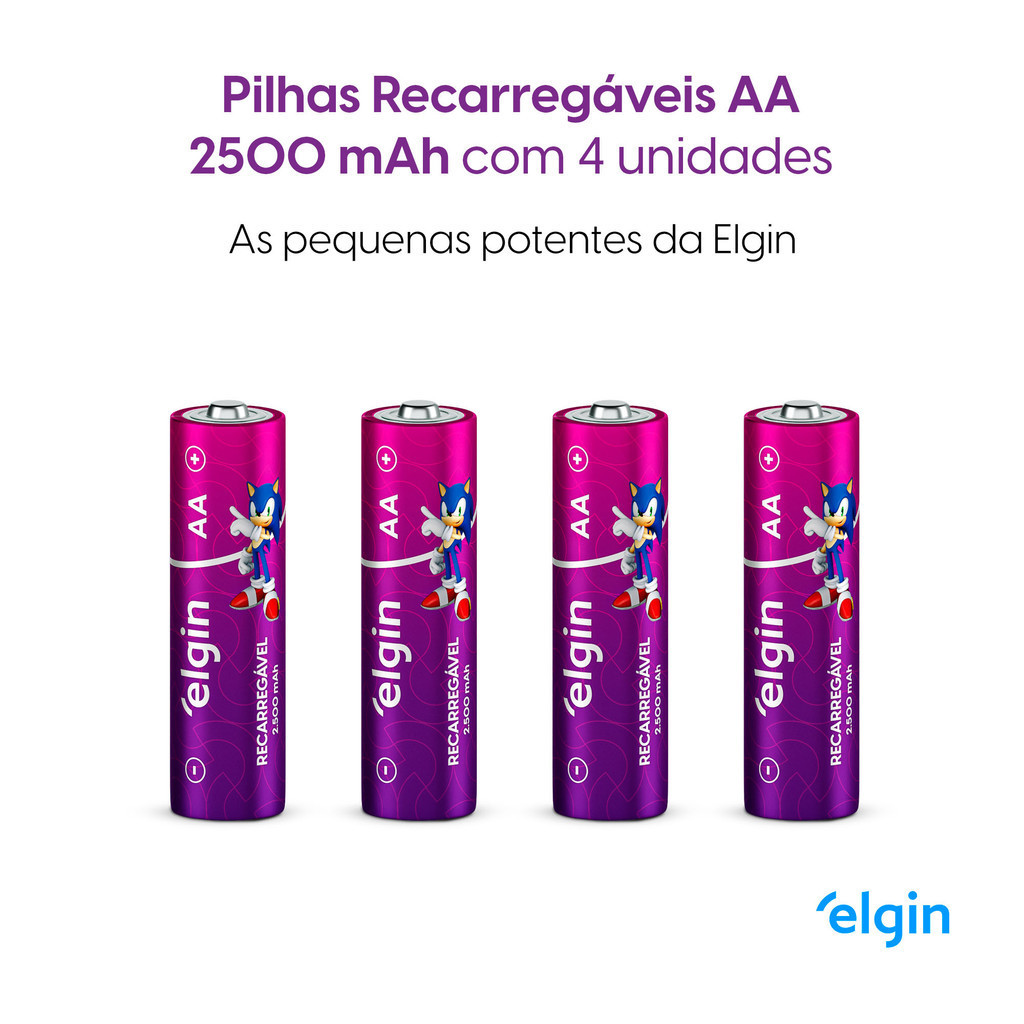 Pilha Recarregavel AA Elgin Bateria 2A 2500mAh Pequena 4 unidades