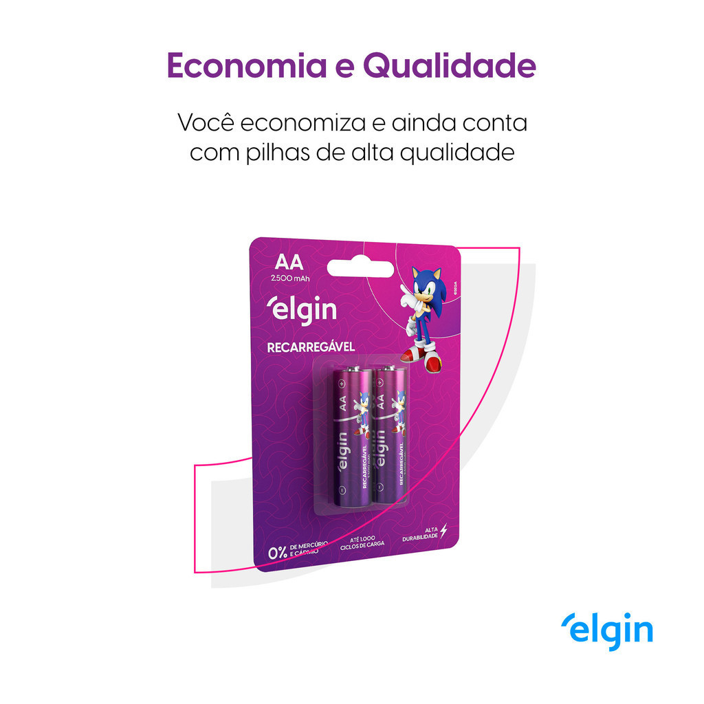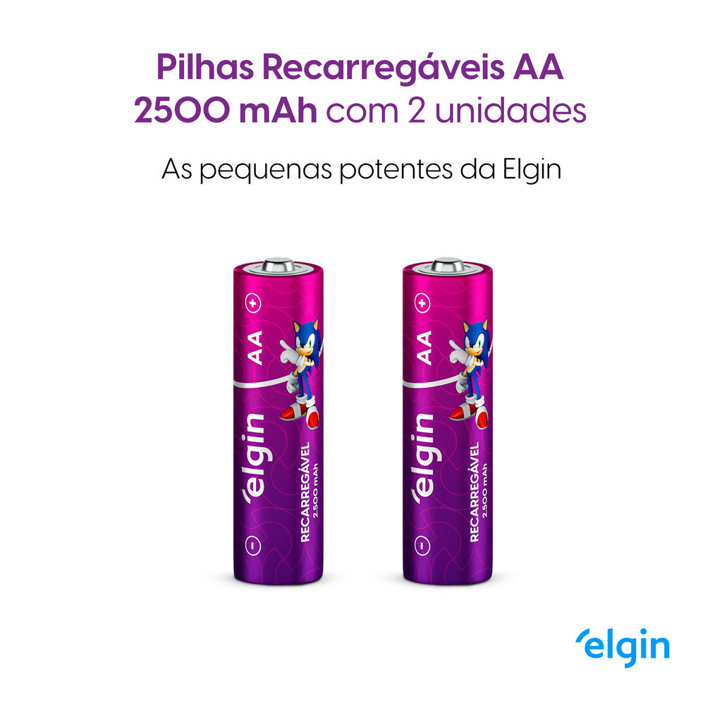 Pilha Recarregavel AA Elgin Bateria 2A 2500mAh Pequena 2 unidades