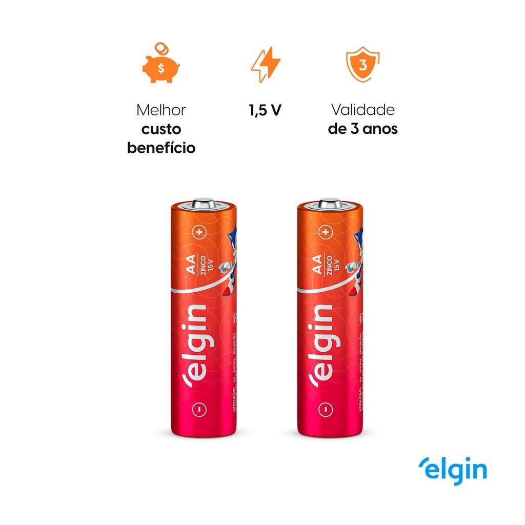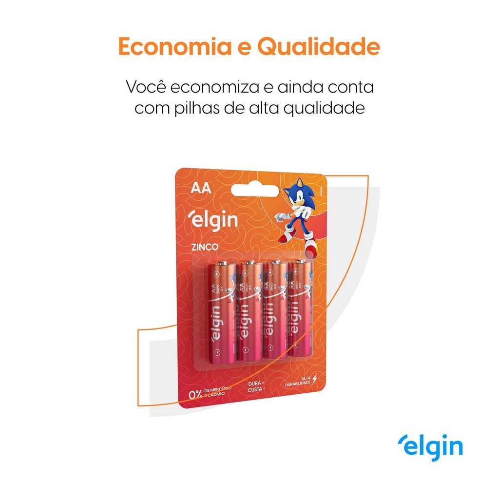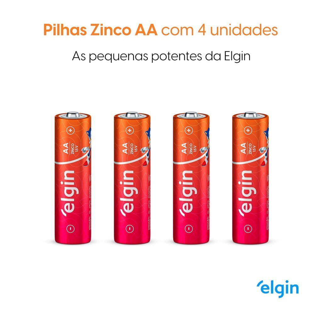 Pilha Zinco AA Elgin Bateria Carvão 2A Pequena 4 unidades