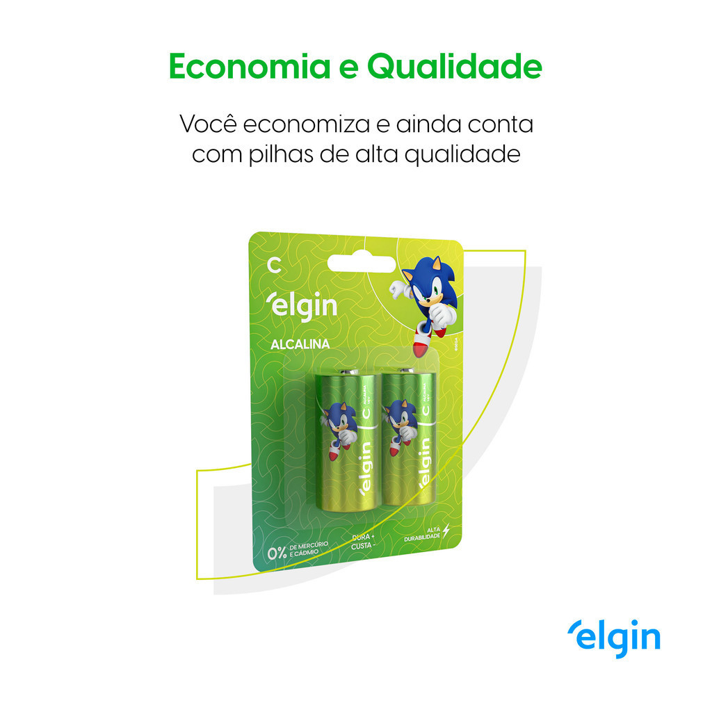 Pilha Alcalina C Elgin Bateria Média LR14 kit 4 unidades