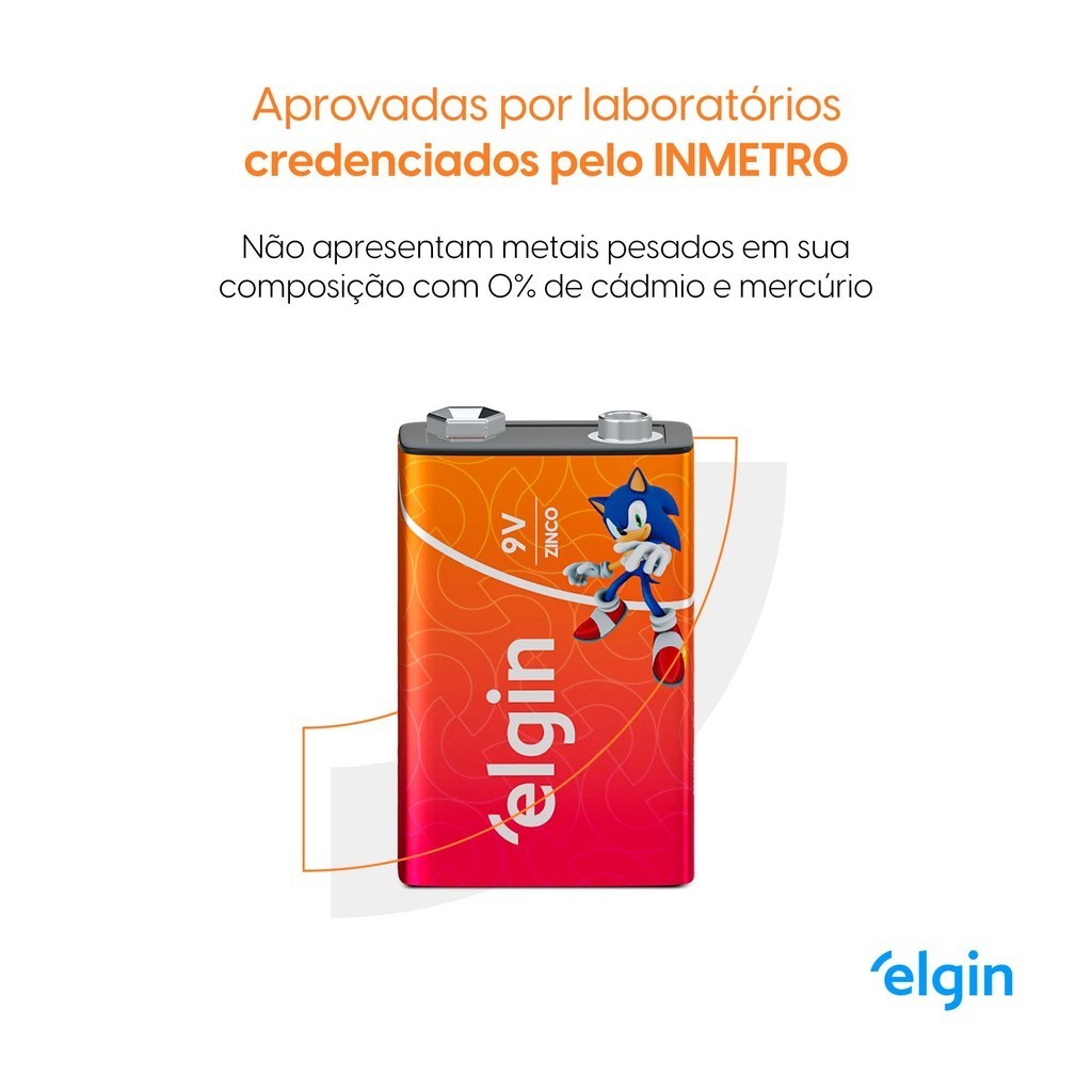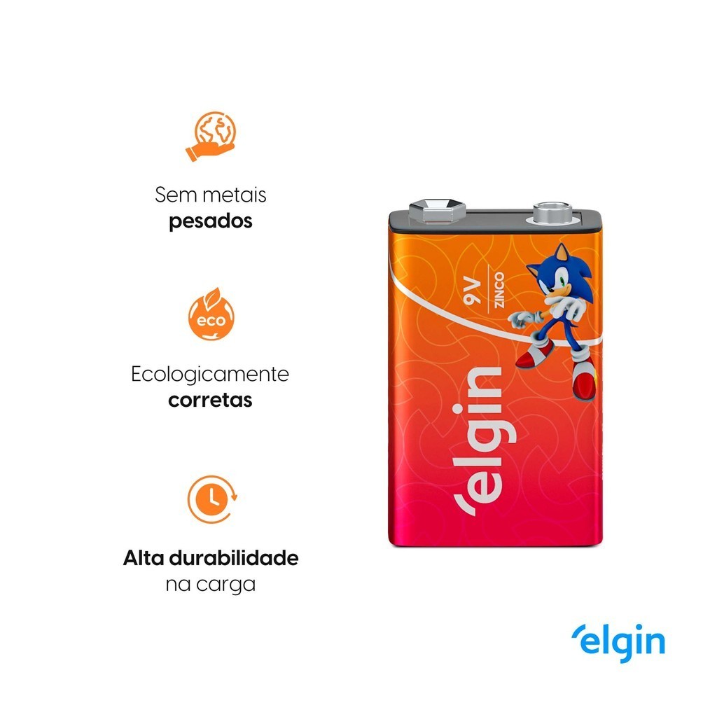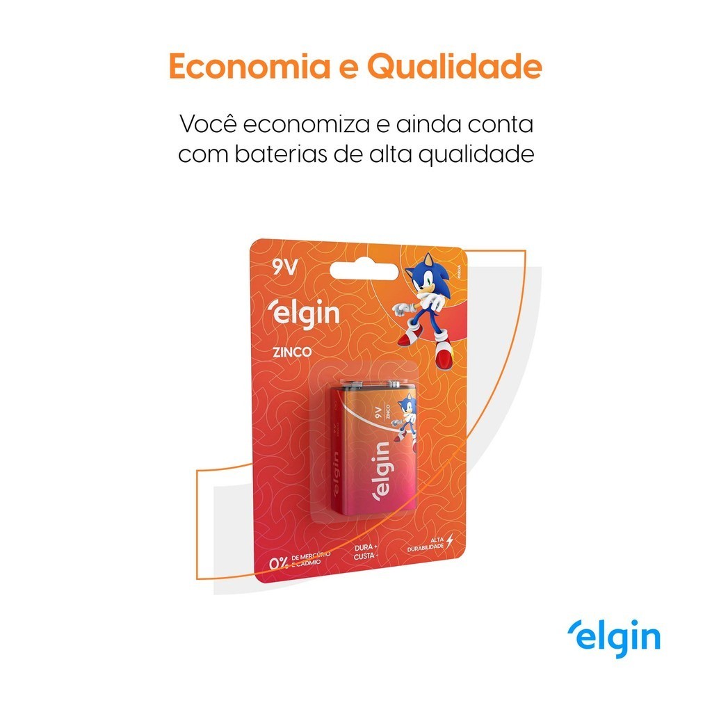 Pilha Zinco 9V Elgin Bateria 9 Volts Carvão 6F22 kit 10 unidades