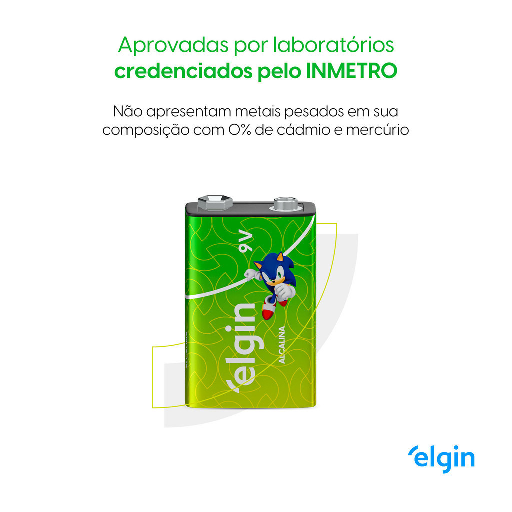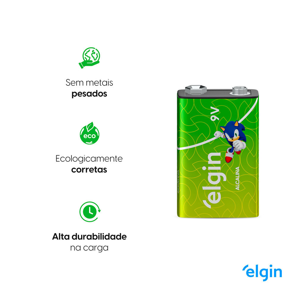Pilha Alcalina 9V Elgin Bateria 9 Volts 6LR61 6F22 kit 2 unidades