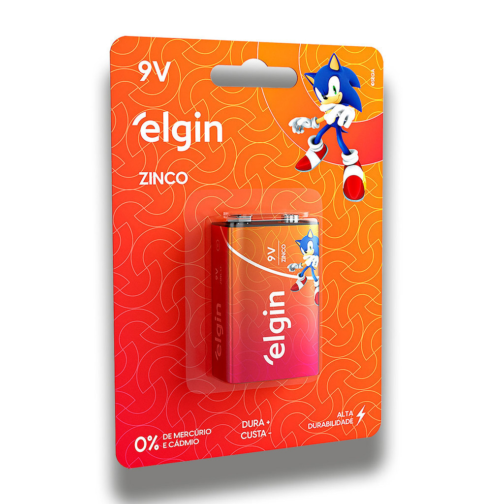 Pilha Zinco 9V Elgin Bateria 9 Volts Carvão 6F22 1 unidade