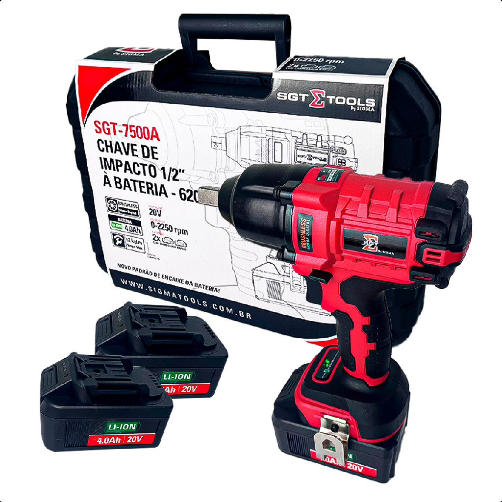 Sigma Tools Chave De Impacto 1/2 A Bateria 620nm 2 Baterias Sgt7500