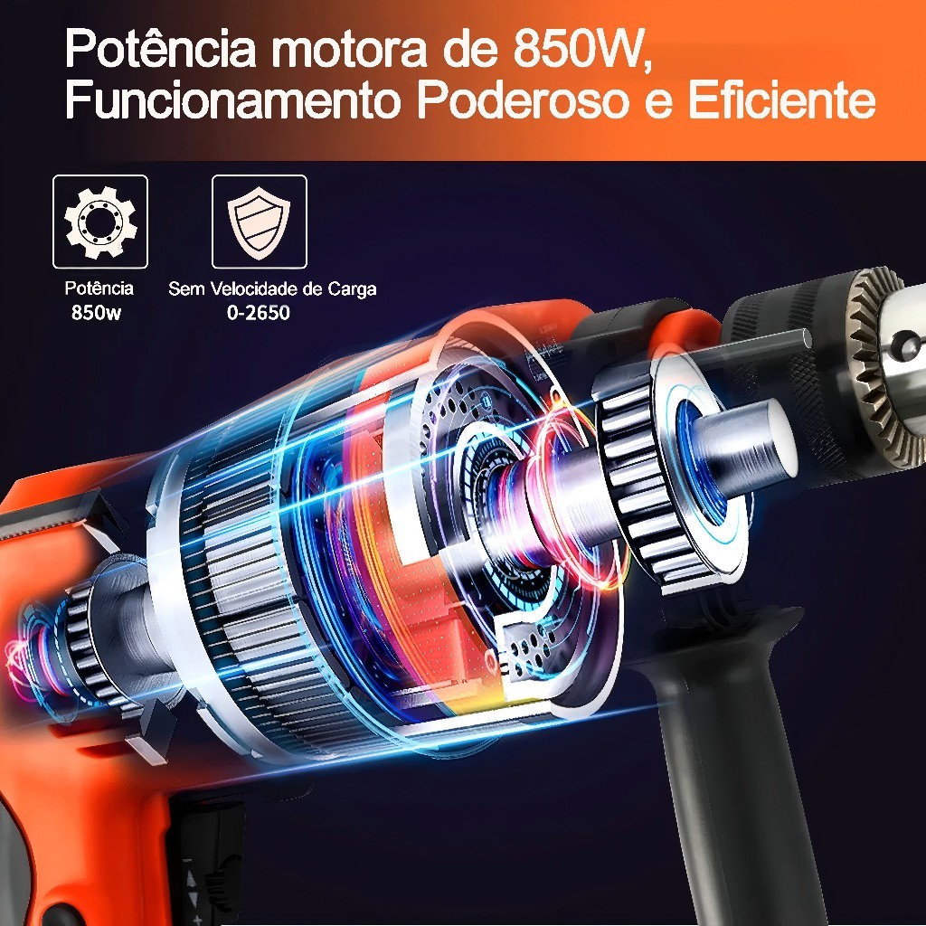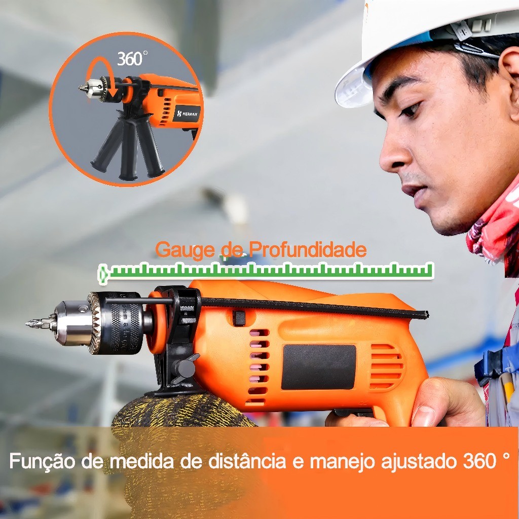 Parafusadeira Furadeira Impacto Profissional, Kit de combinação de martelo/broca rotatório,laranja 127V/220V