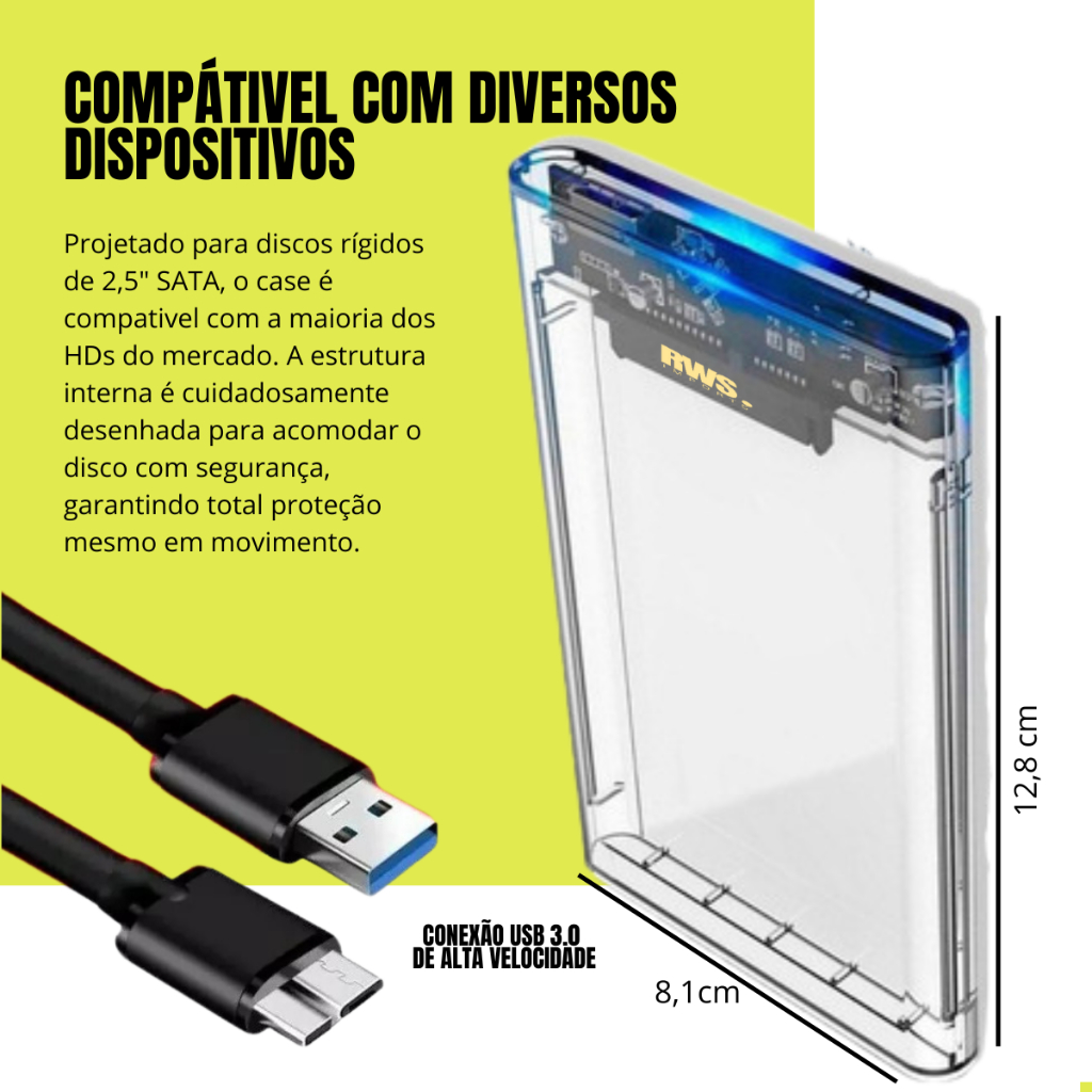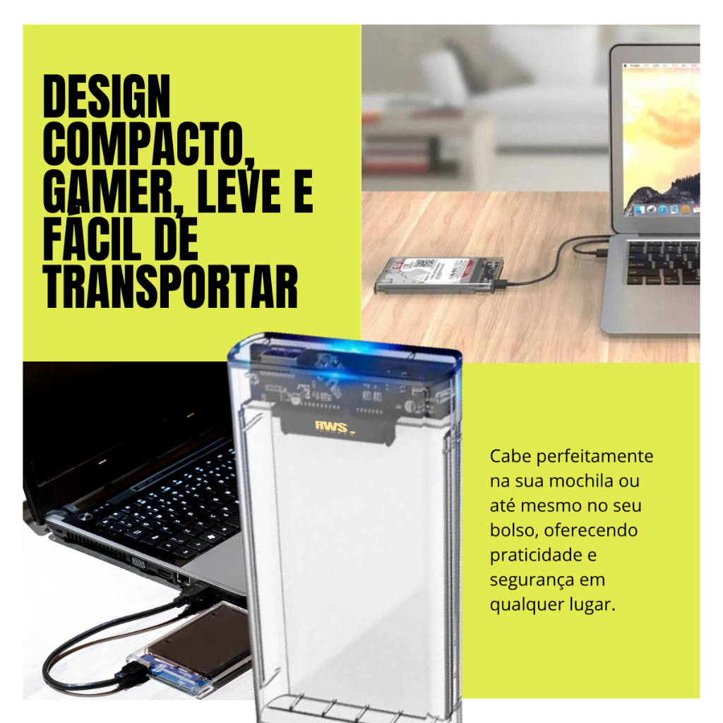 Case Slim para HD Externo 2.5” SATA USB 3.0 – Alta Velocidade e Portabilidade SSD Notebook PS4 XBOX