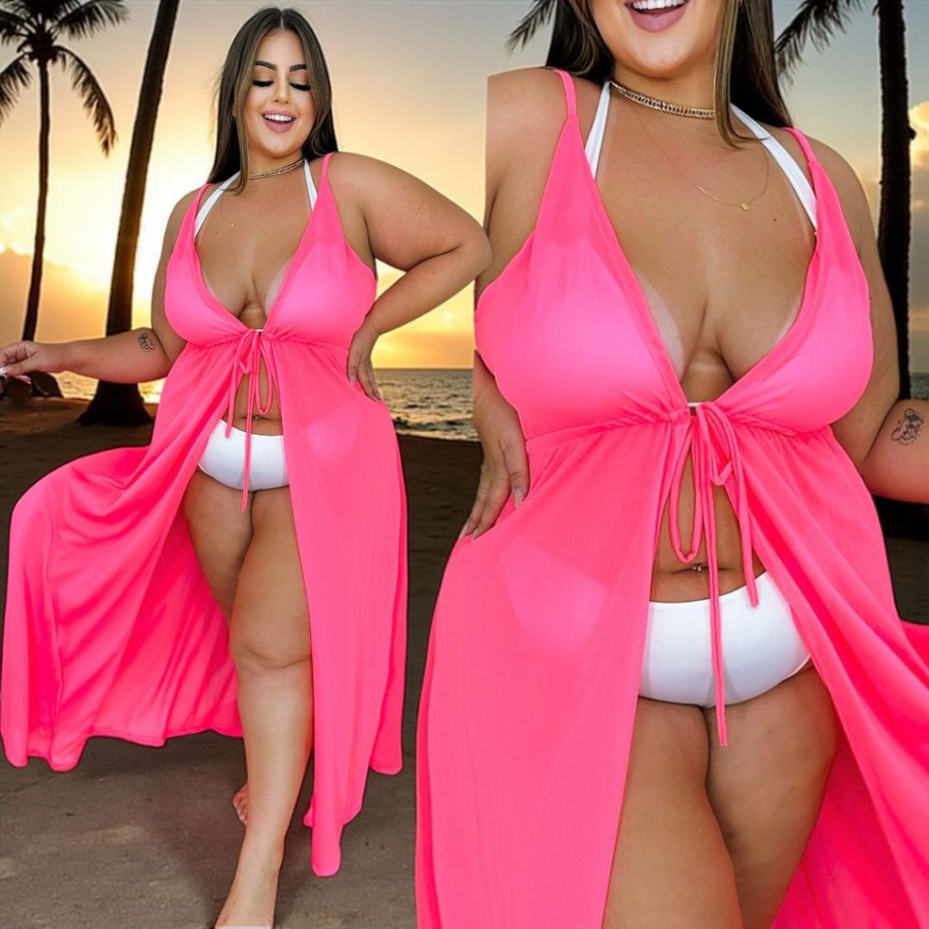 Saída de Praia Longa luxuosa Vip Plus size e Slim verão 2026 de alcinha