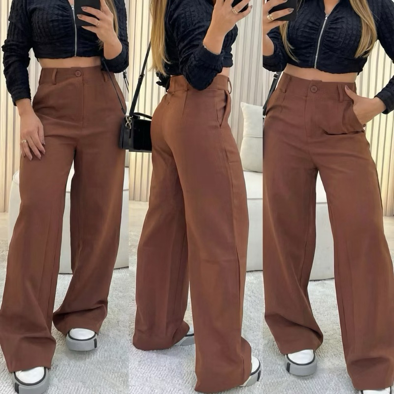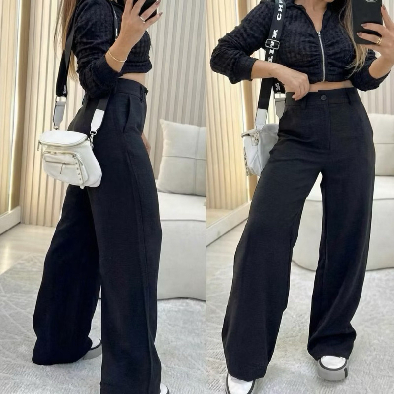 Calça Pantalona Alfaiataria Premium Com Bolso Wide Leg PROMOÇÃO