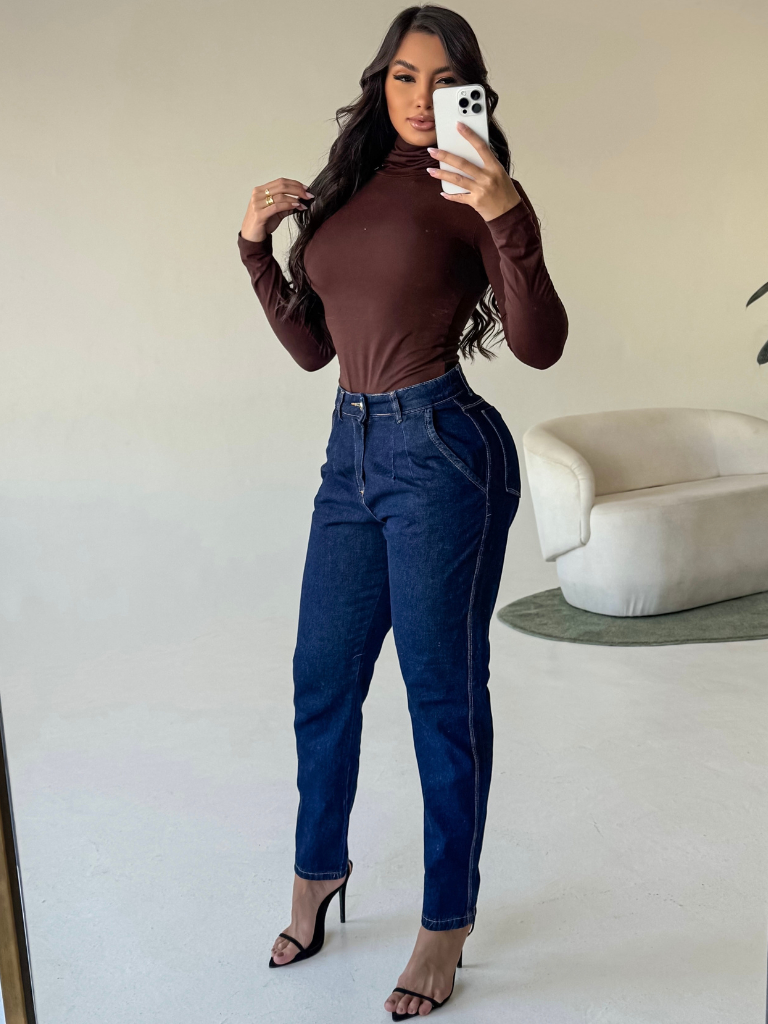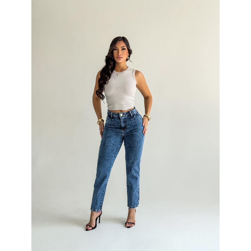 Calça Feminina Jeans MOM Premium Cintura Alta 100% Algodão LISA Veste Bem Cintura Alta Levanta Bumbum