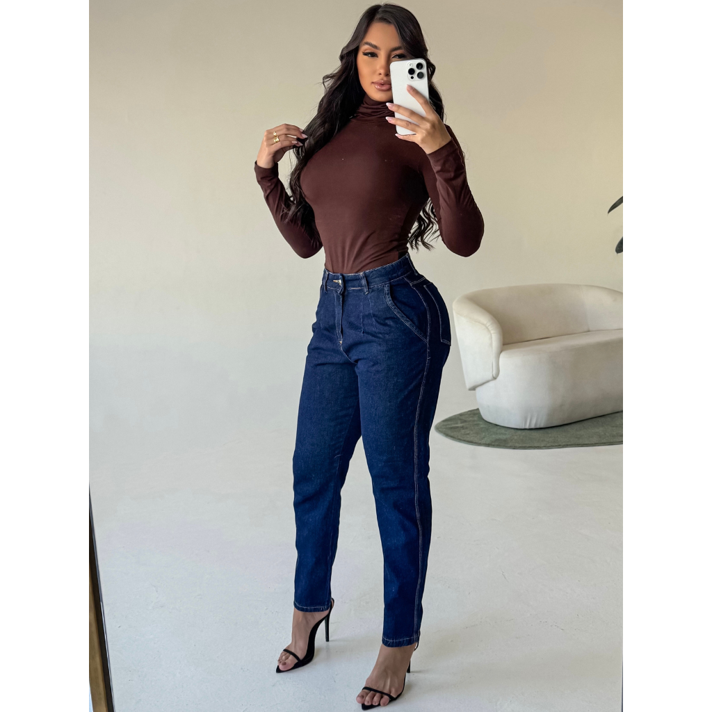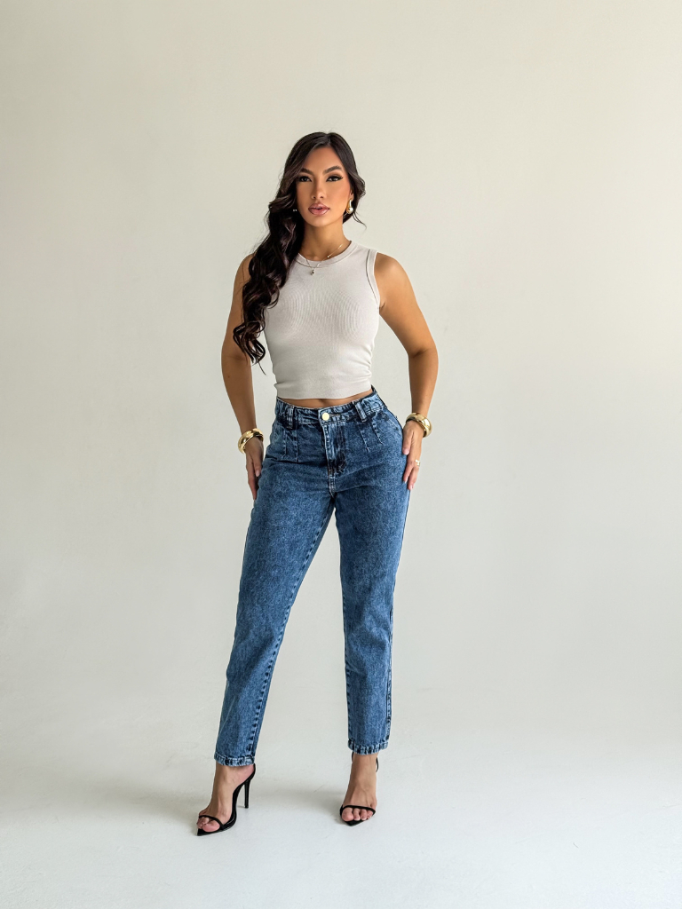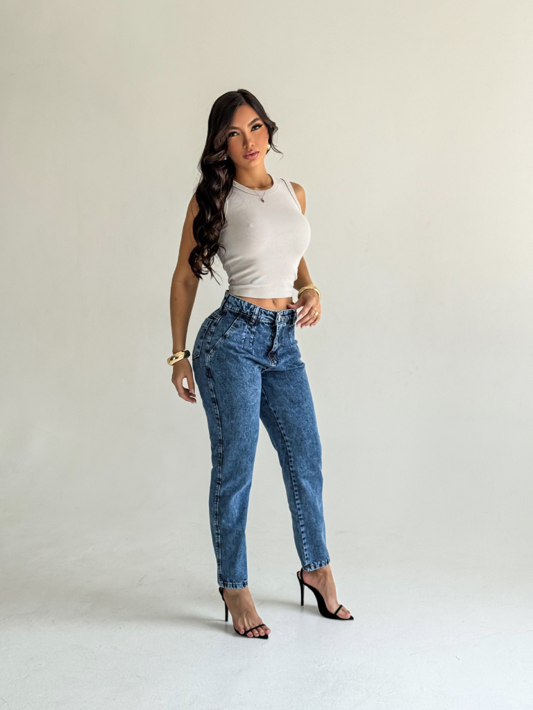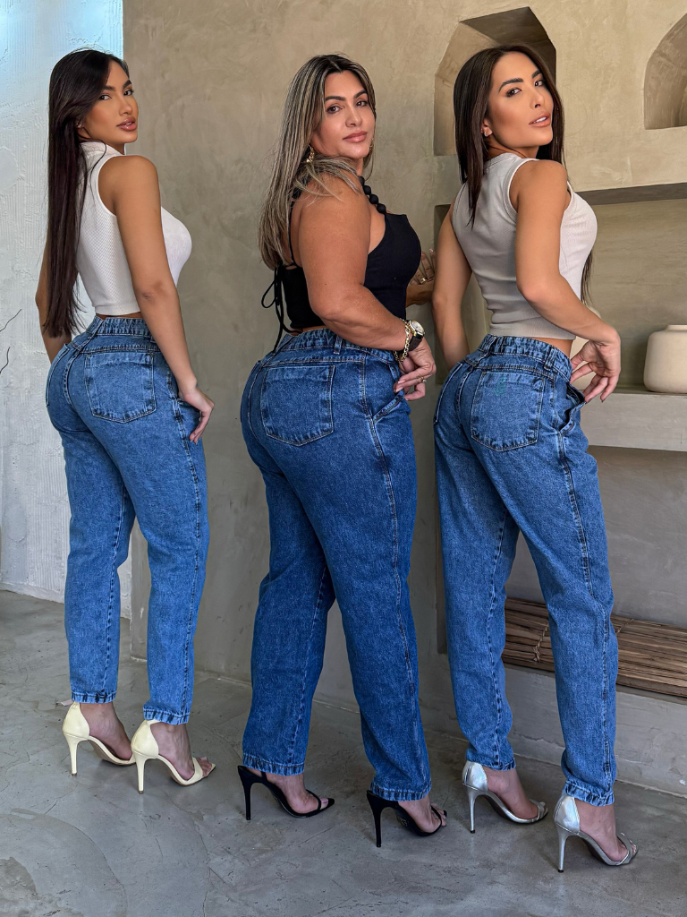 Calça Jeans Feminina MOM Premium Cos Alto 100% Algodão LISA Boyfrend Luxo Feminina Empina Bumbum Marmorizada