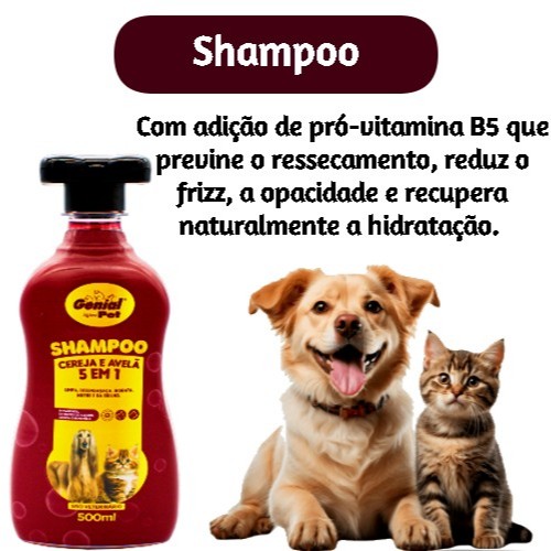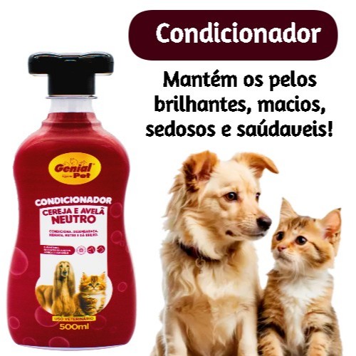 Kit Shampoo Banho e Tosa Genial, Condicionador Neutro Cereja e Avelã 500ml Cachorro Gato