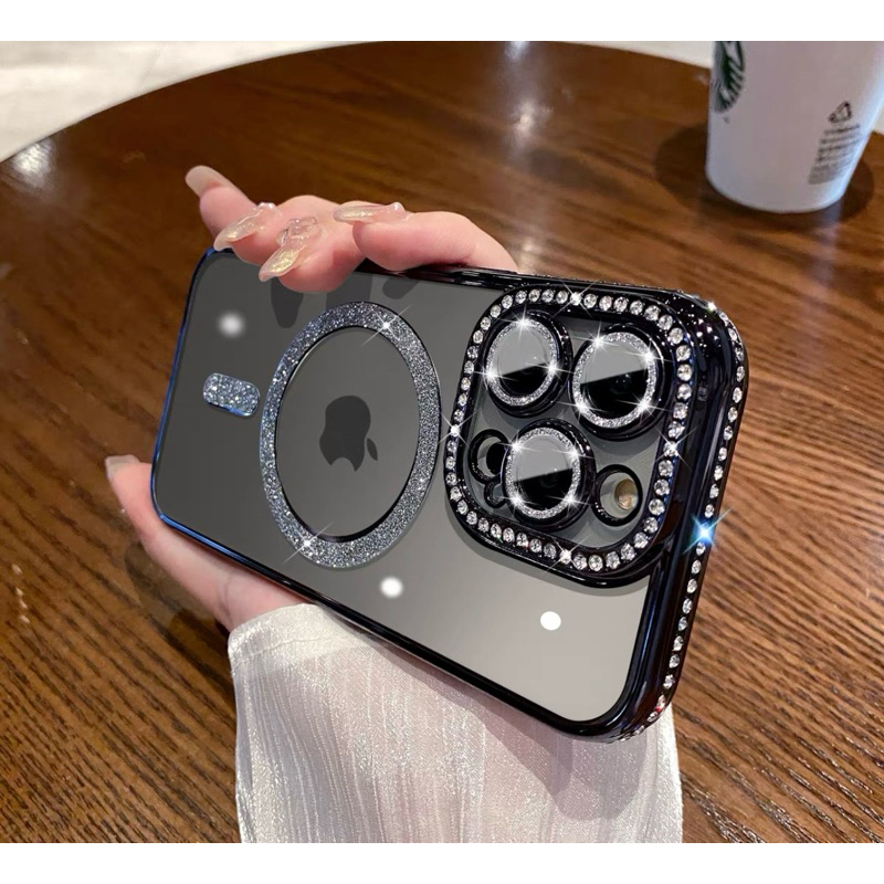 Capa Capinha magnética magsafe strass Para IPhone 15 15plus 15pro 15promax transparente novo brilho