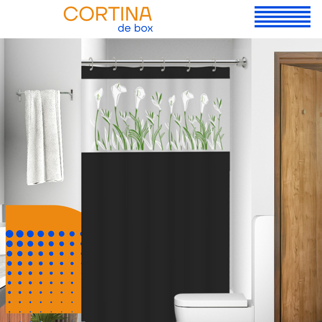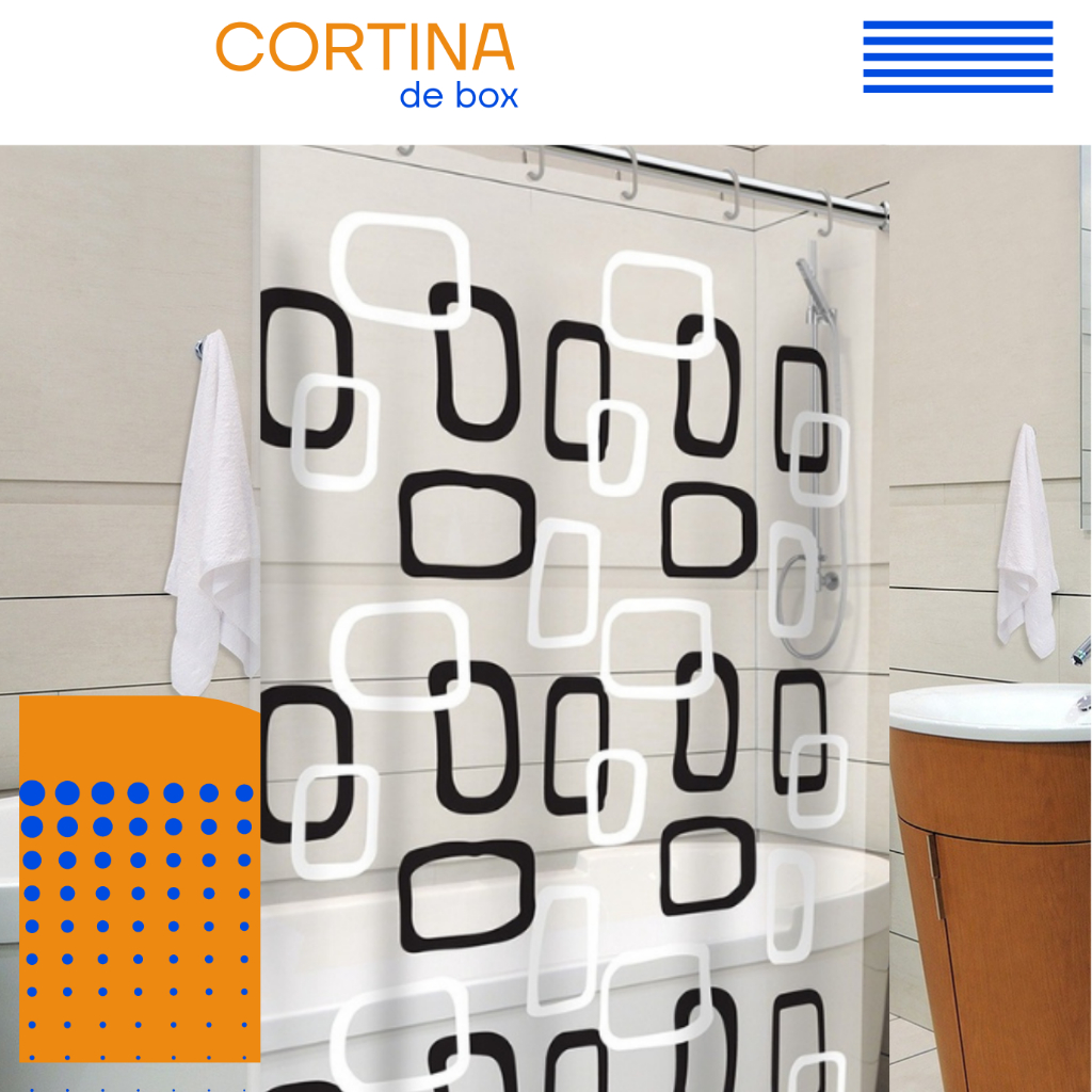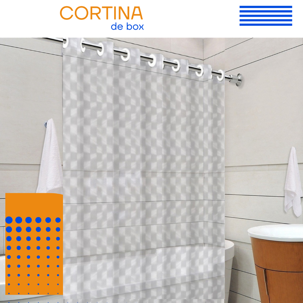 Cortina De Banheiro Box Com Visor Transparente Em PVC Anti Mofo Grande Com Ganchos Vários Modelos