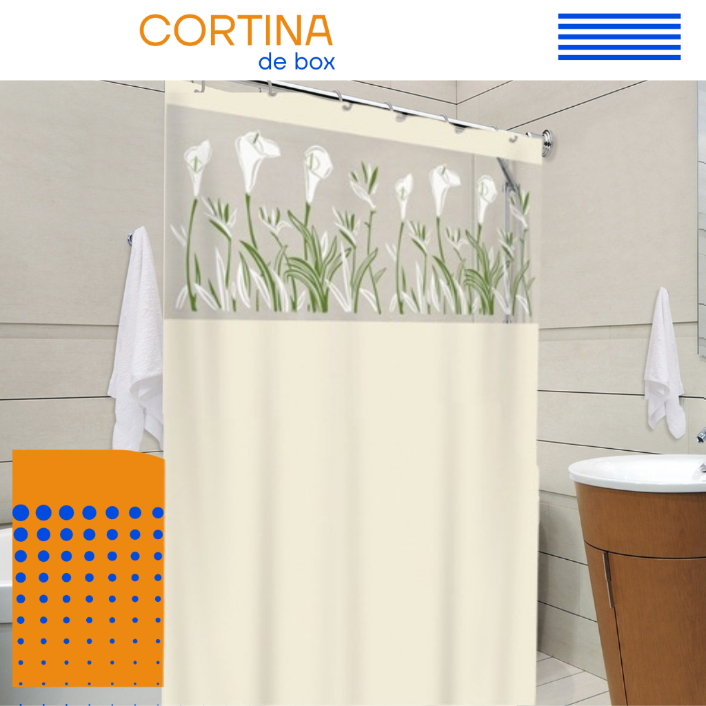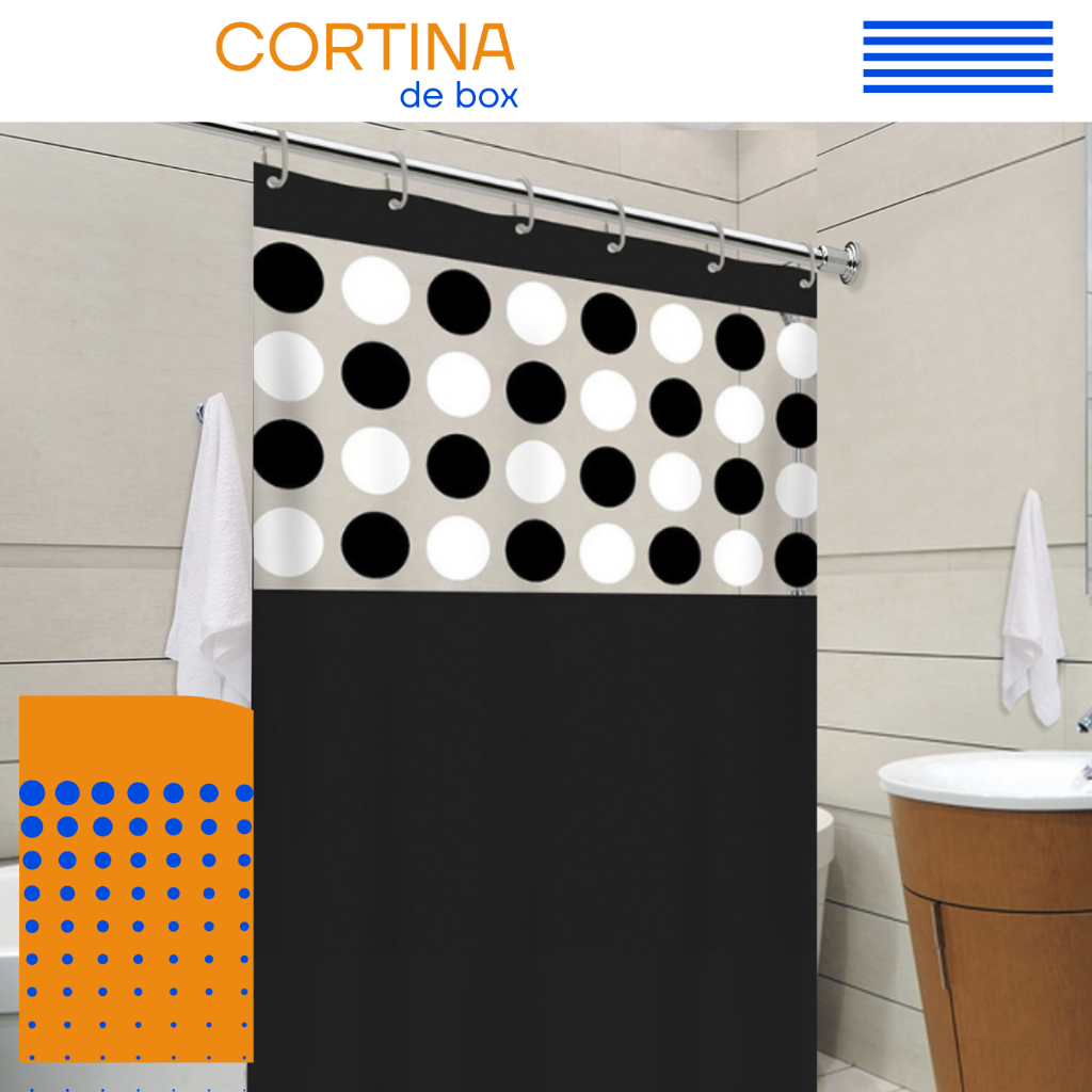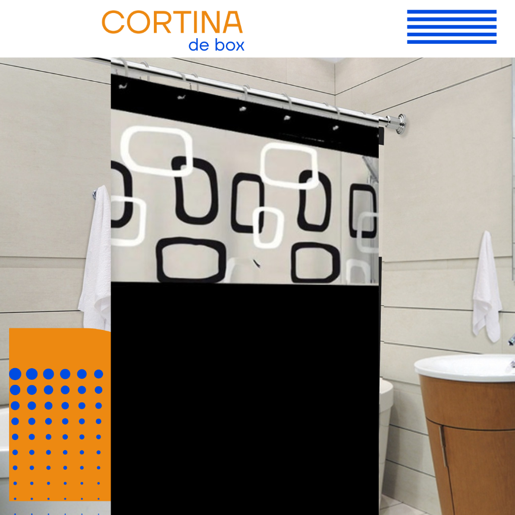 Cortina De Banheiro Box Com Visor Transparente Em PVC Anti Mofo Grande Com Ganchos Vários Modelos